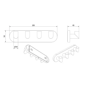 VikingBad Luna Rund Knaggrekke med 4 kroker – Gull