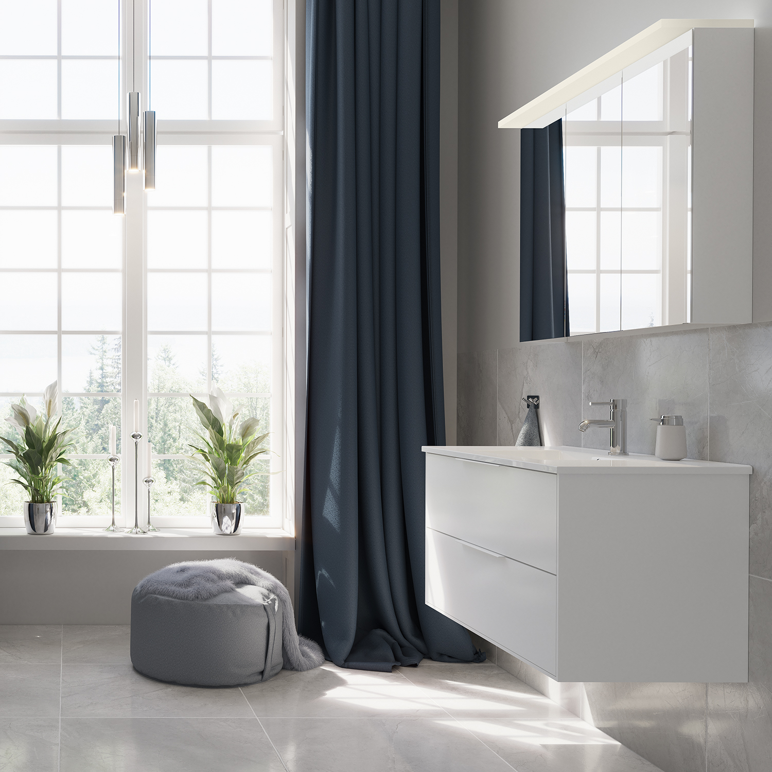 Lystopp til speilskap og servantkran m/klikkventil kan kjøpes som tillegg