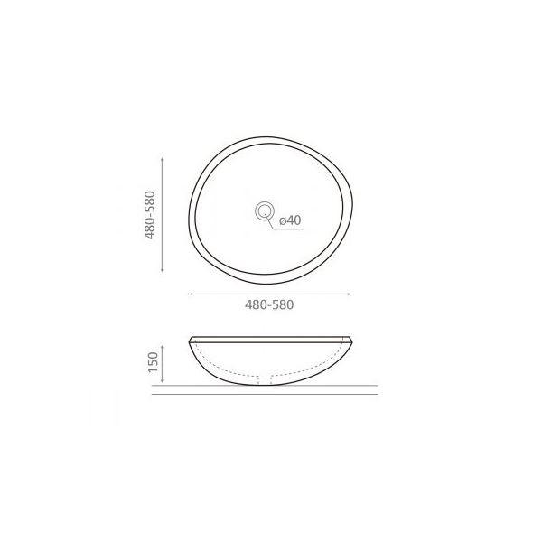 Bolleservant i elvestein. OBS denne servanten kan variere mye fra fargen som vises på bildet. Målene varierer også i størrelse. Vekt 23 kilo. Kan ikke benyttes på HPL-benkeplater.