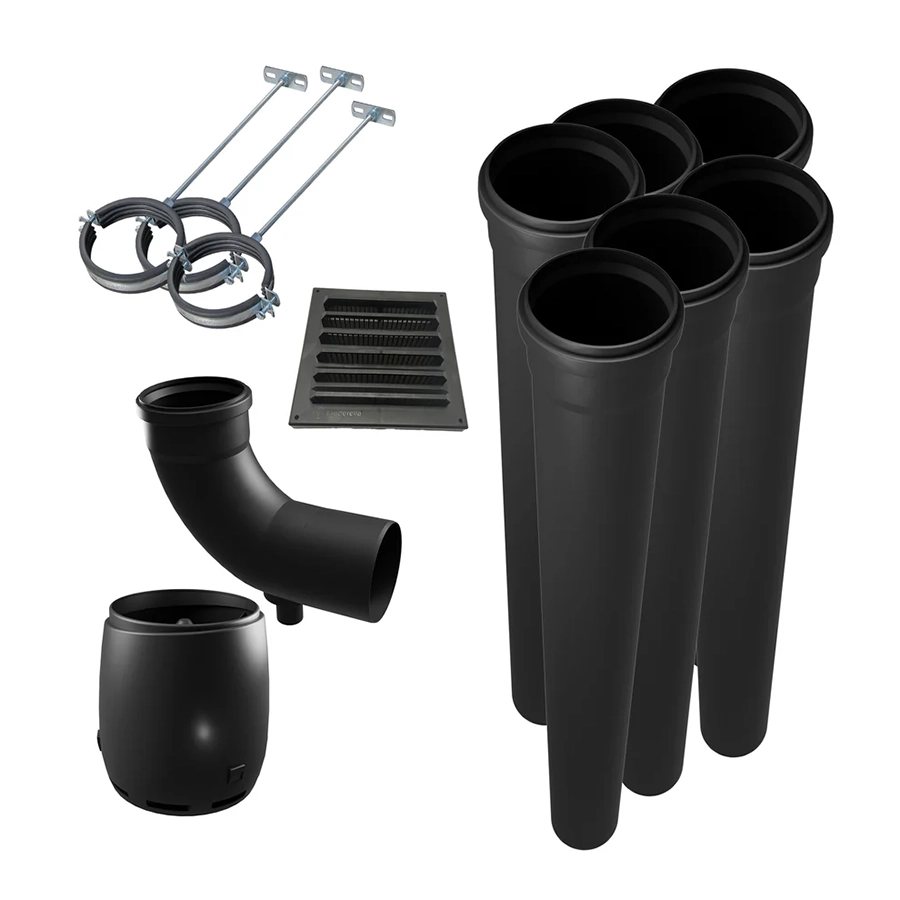Etter stor etterspørsel gjør Cinderella nå matt sort til standardfarge i Cinderellas installasjonspakker. De nye rørene er spesielt egnet for ventilasjon, og er i tillegg UV-stabiliserte, noe som hindrer falming over tid. Rørene matcher den nye pipehatten, og installasjonen vil som helhet passe de fleste eksteriører. Pipehatten er viktig for optimal forbrenning og bidrar til å holde ventilasjonsrøret fritt for kvist, løv og annet rusk. Cinderellas nye pipehatt har et nytt, strømlinjeformet design, gir mindre motstand og bidrar dermed til 20% bedre luftgjennomstrømning i røret.