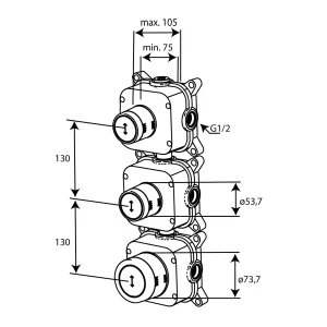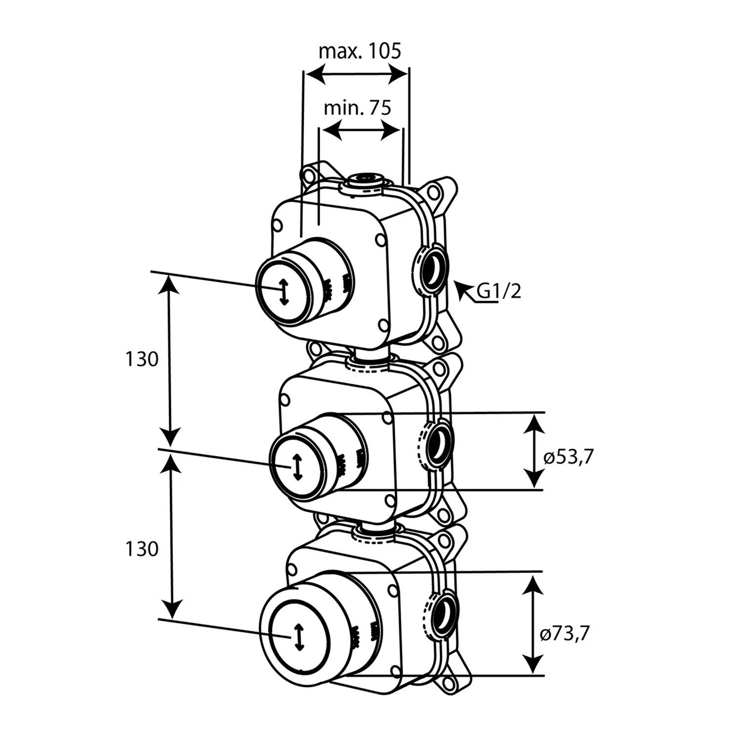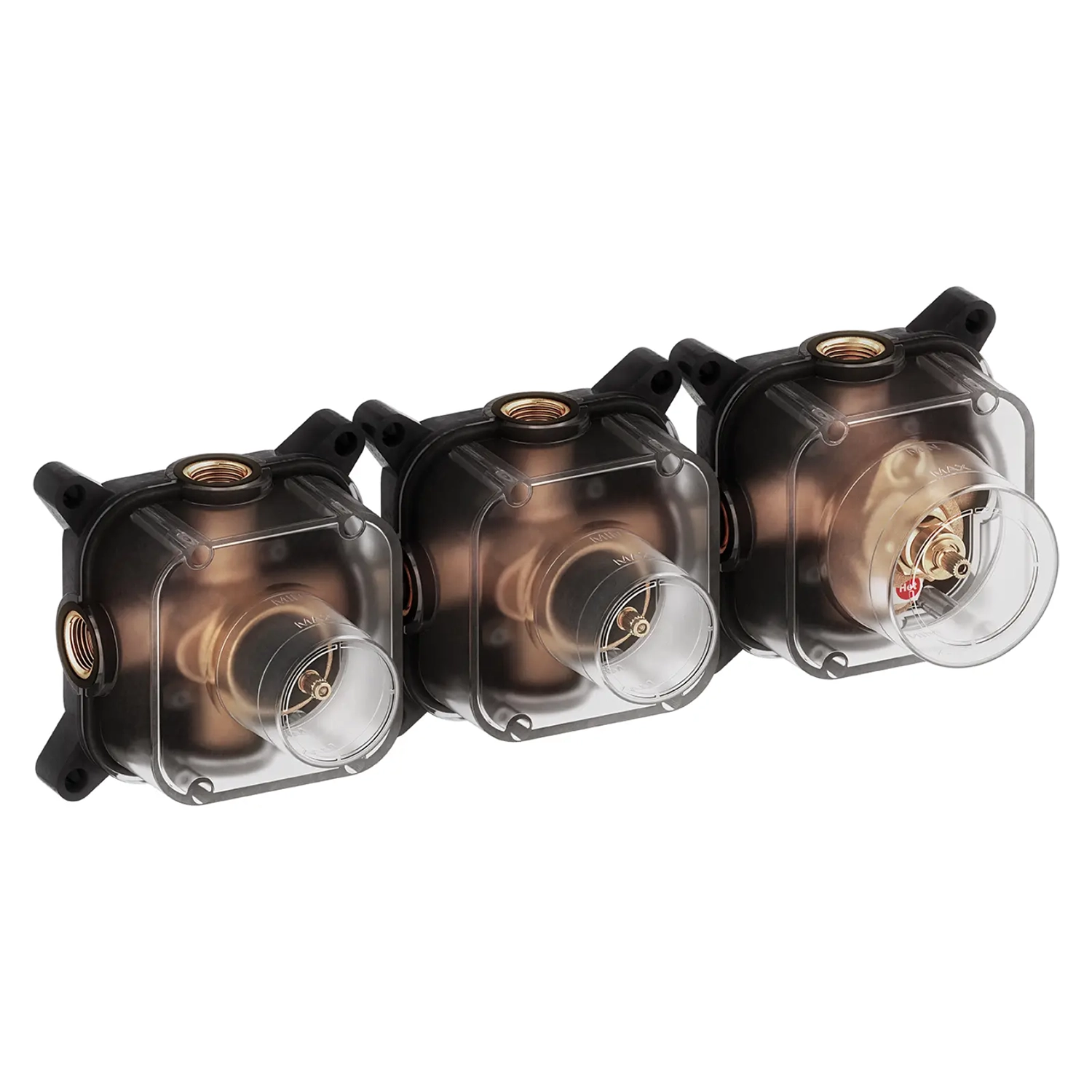Innvendig del for Silhouet XS1/XS2 takdusj for innbygging. For komplett sett monteres denne med Silhouet XS1 eller Silhouet XS2 takdusj for innbygging, i tillegg til sikkerhetsboks og siklemikk. Den innvendige delen er termostatstyrt.