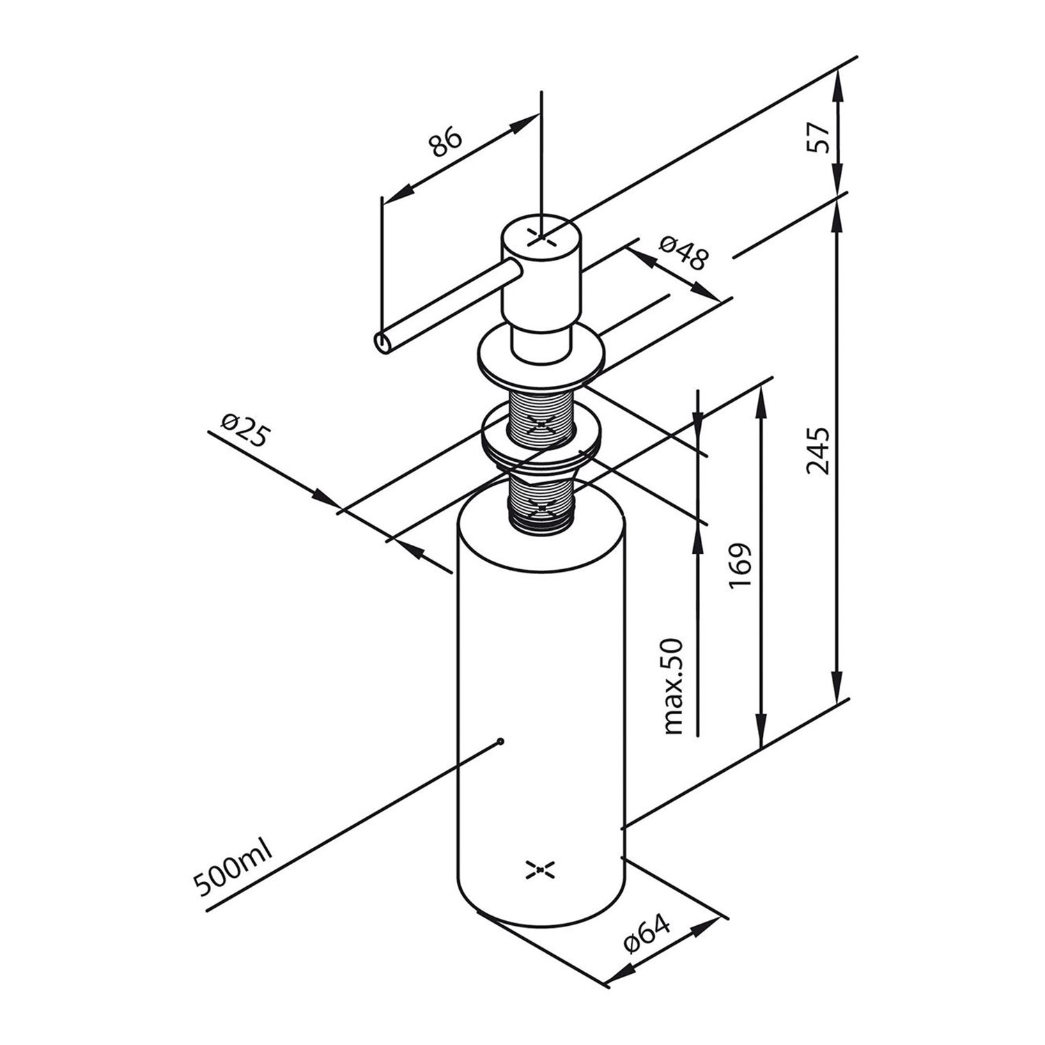 Såpedispenser til kjøkkenbenk med 500ml beholder. For mål under benk, se måltegning.