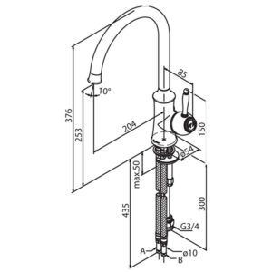 Nostalgisk kjøkkenkran. Avstengning for oppvaskmaskin diskret plassert på baksiden. Ettgreps kran med eco-save og skoldesperre.
