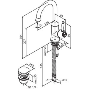 Tradition Servantkran Høy C-Tut m/Klikkventil – Krom