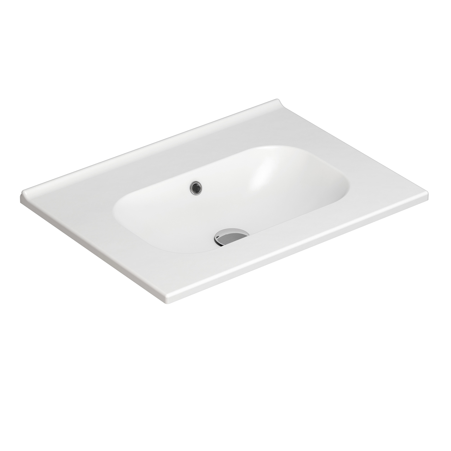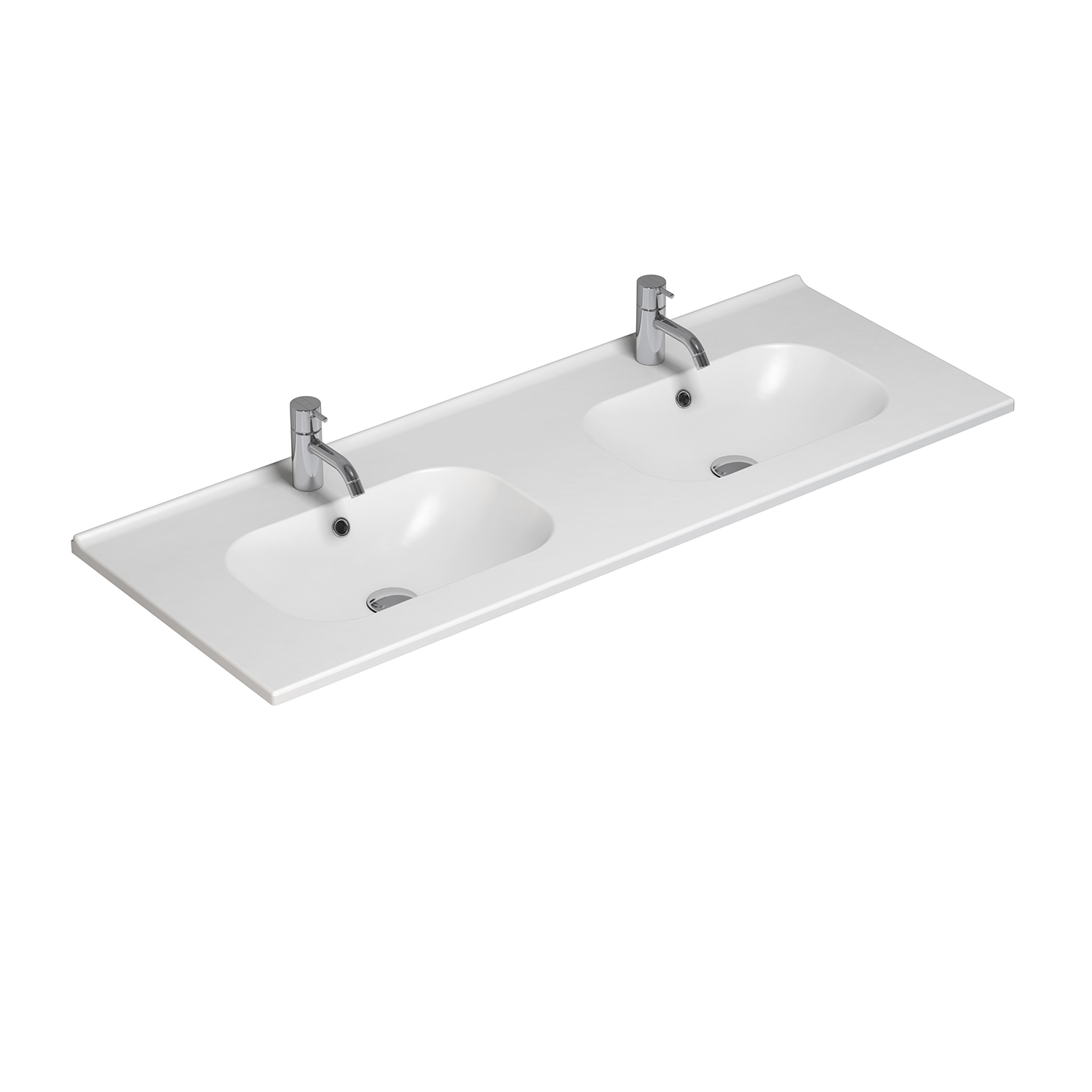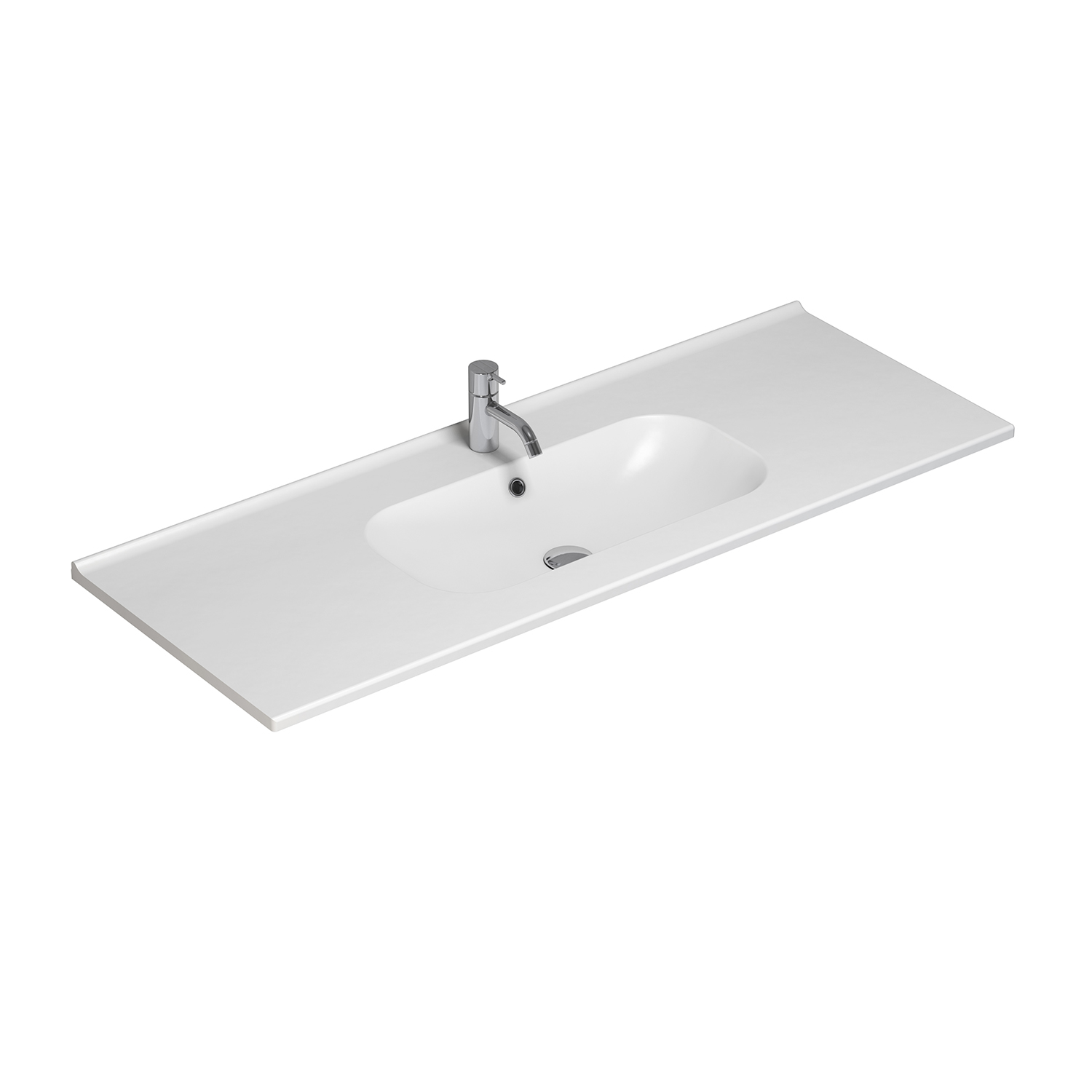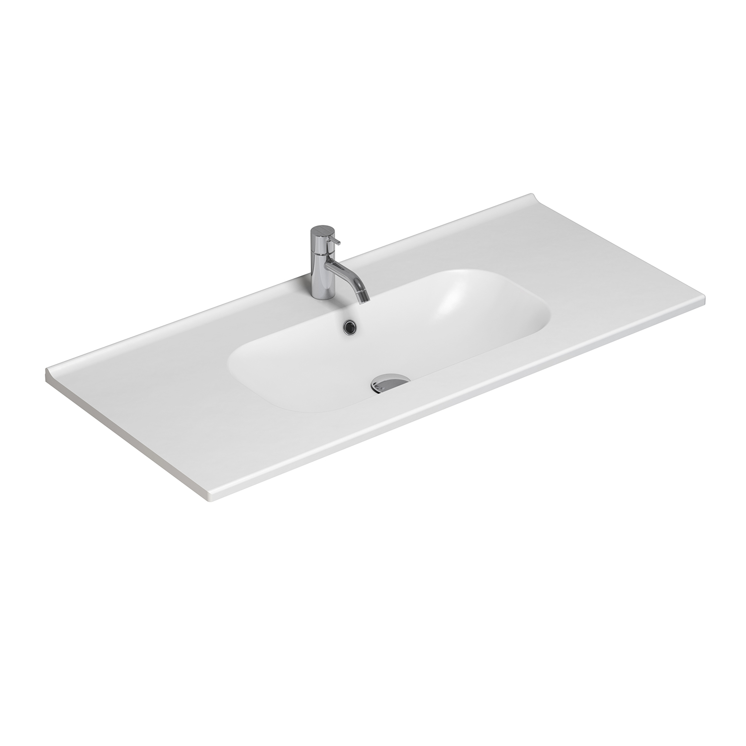 Rette linjer og ovalt basseng med god plass rundt. Sanitærporselen er et sterkt, keramisk materiale med et mykt og avrundet design på alle kanter, både i bassenget og benkeplaten. Overflaten er hard, glatt og blank, og de avrundede kantene gjør den svært rengjøringsvennlig. Servanter i sanitærporselen krever minimalt vedlikehold – selv etter mange års bruk. Servanten tåler ikke skuremidler.