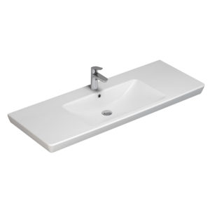 Sanitær porselen er et sterkt, keramisk materiale med et mykt og avrundet design på alle kanter, i både bassenget og bordplate. Overflaten er hard og glatt, og de avrundede kantene gjør den svært rengjørings vennlig. Servanter i sanitær porselen krever minimalt vedlikehold – selv etter mange års bruk. Servantkran og bunnventil medfølger ikke.