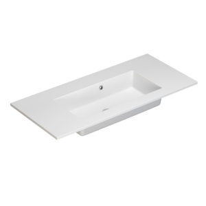 Et lekkert servantdesign med matt, fløyelsmyk overflate og dypt, rektangulært basseng med lett avrundede hjørner. Minore har et stort og romslig basseng som vokser i takt med servantens størrelse.