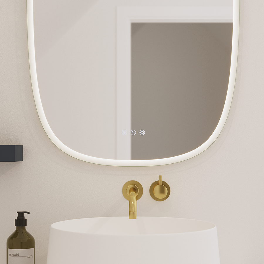 Squircle speil – funksjonelt design med myk belysning og visuell balanse