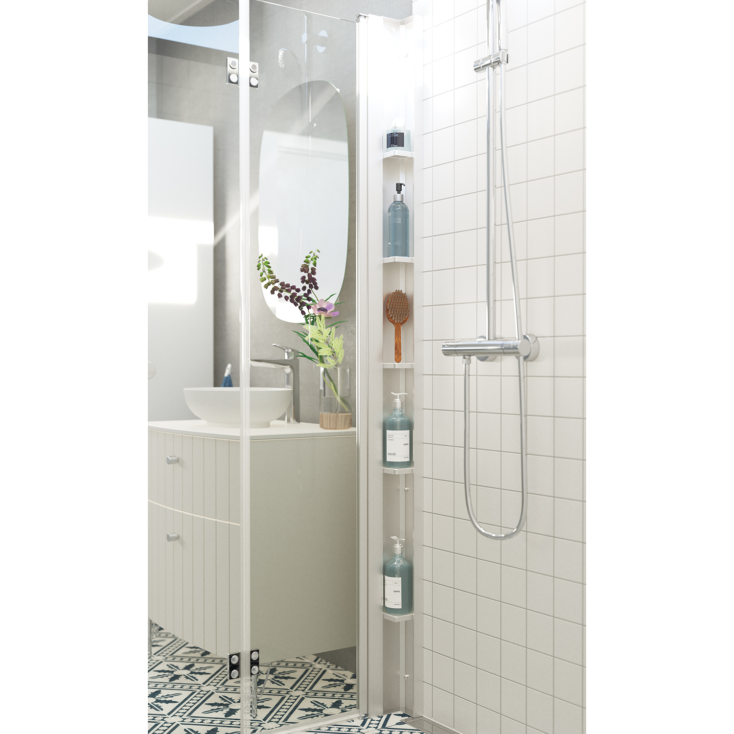 Dansani Tower gir deg en innovativ løsning med rikelig oppbevaringsplass i dusjen uten å gå på kompromiss med estetikken. Dette praktiske systemet passer perfekt sammen med Dansanis Match dører og vegger, og skaper en stilren helhet. Tower har 5 flyttbare hyller som organiserer produktene du trenger i dusjen. Velg en dør eller vegg som er 10 cm smalere for å få plass til Tower-hyllen. Dette er en ideell løsning for deg som vil optimalisere plassen uten å ofre stil eller funksjonalitet. Tower gir deg både praktisk oppbevaring og en elegant dusjopplevelse med orden og velvære.