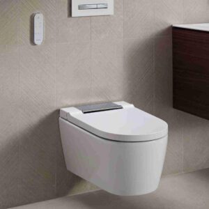Geberit AquaClean Sela imponerer med sin eleganse og skjønnhet og oppfyller de høyeste kvalitetsstandarder. Med sitt rene, elegante design og materialer av høy kvalitet, er dette dusjtoalettet det ideelle valget for de som har et øye for smakfull stil.