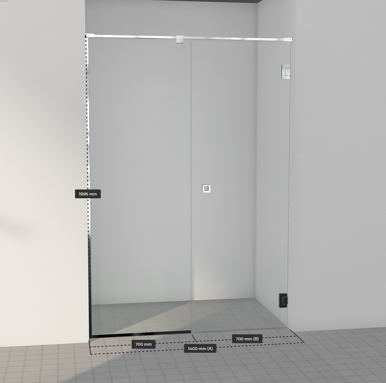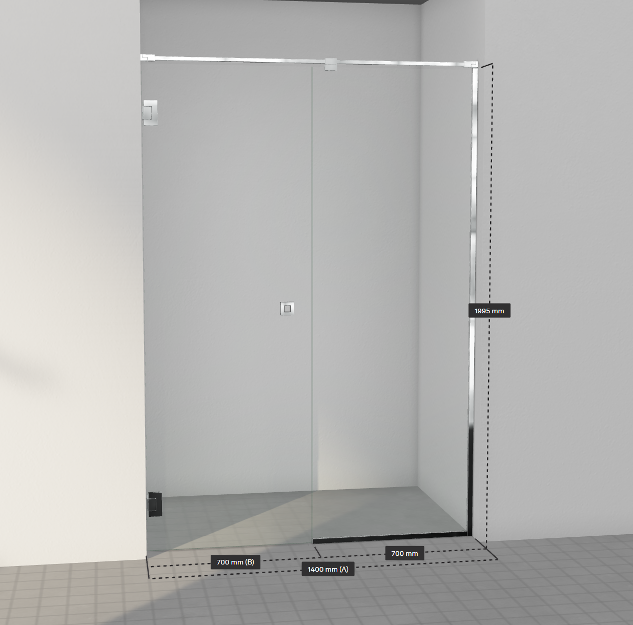 - Bredde 500–2200 mm (A=fastfelt B=dør)