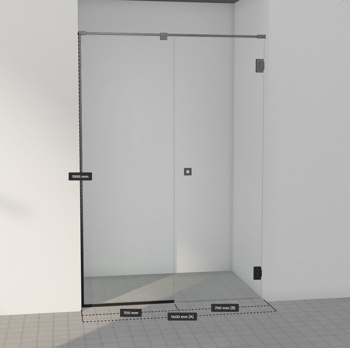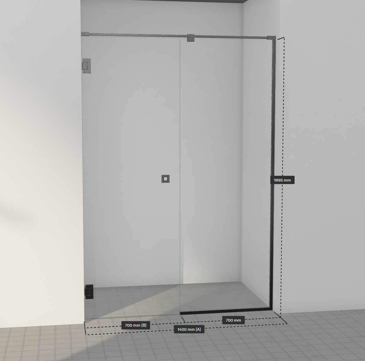 • Bredde 500–2200 mm (A=fastfelt B=dør)