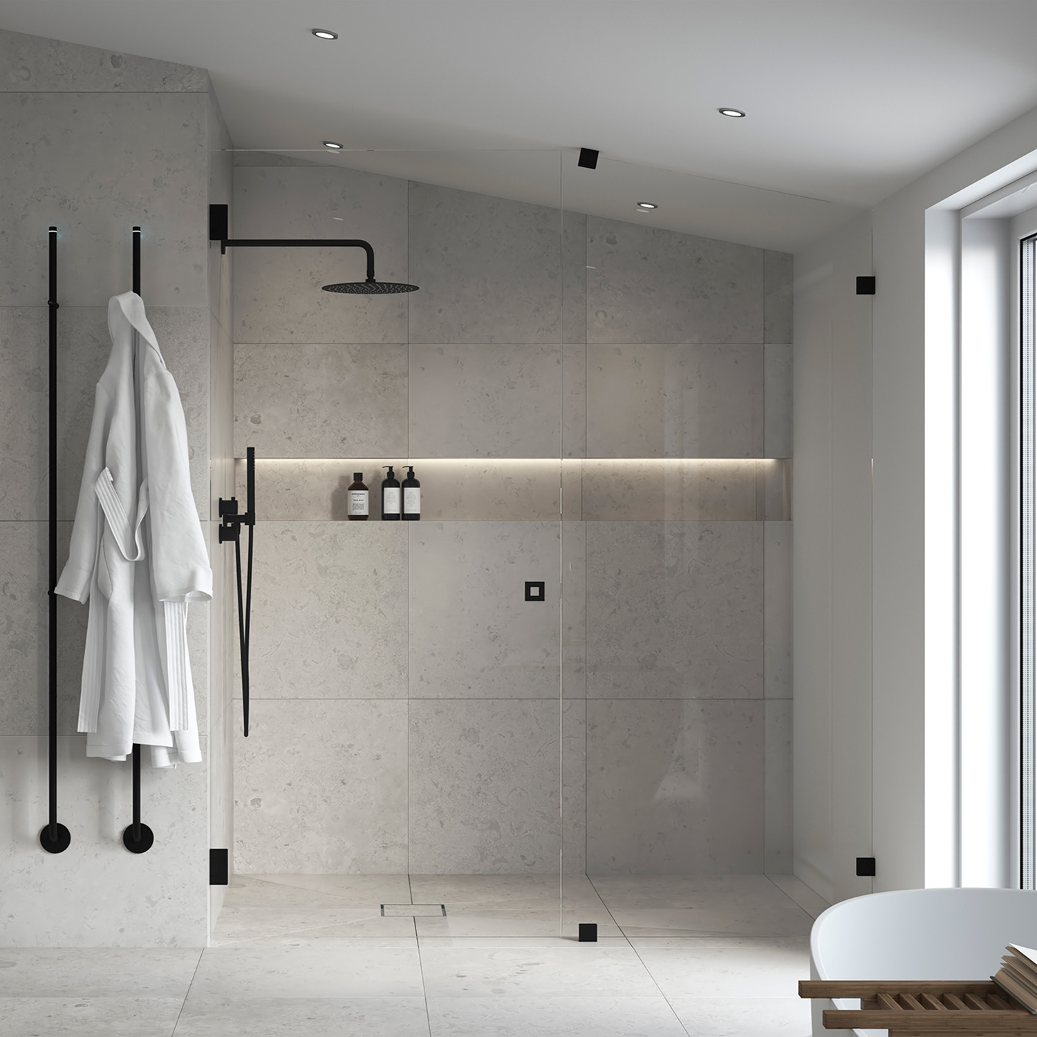 Velg mellom flere glass og utførelser for å sette ditt personlige preg. Du kan matche utførelsen på dusjen med blandebatteri, tilbehør og håndkletørkeren Line.