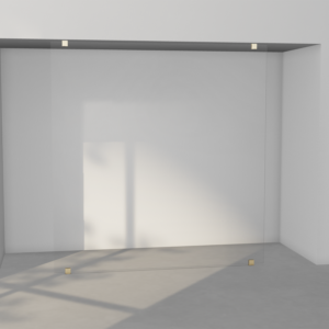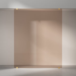 Et frittstående løsning i 8 mm glass for plassering midt på vegg
