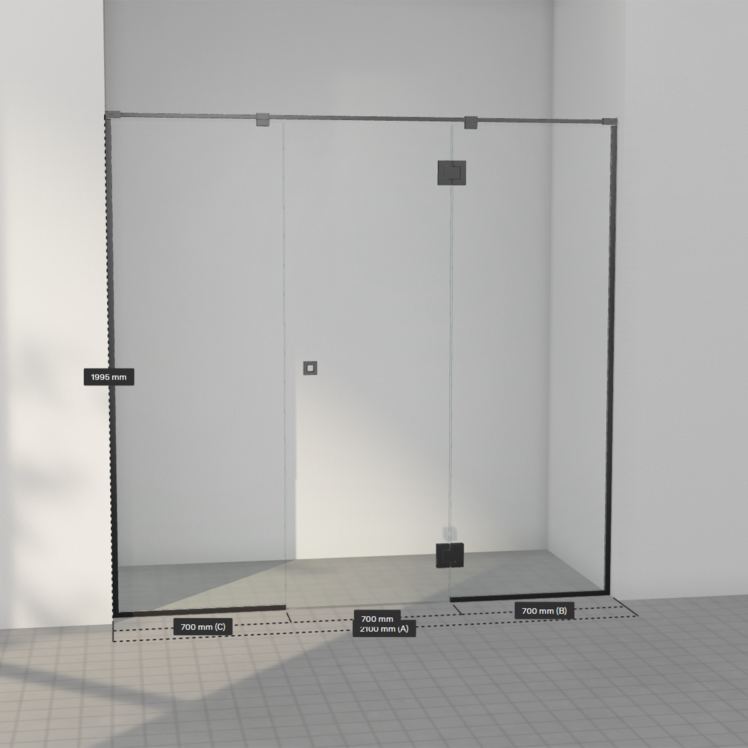 - Standard høyde 1995 mm øvre kant glass (2030 mm øvre kant stag)