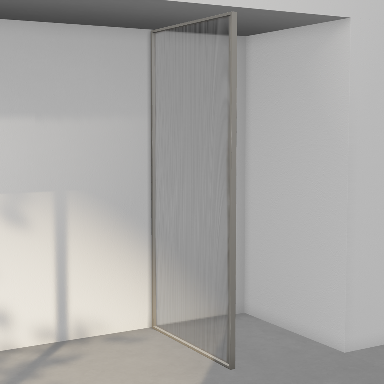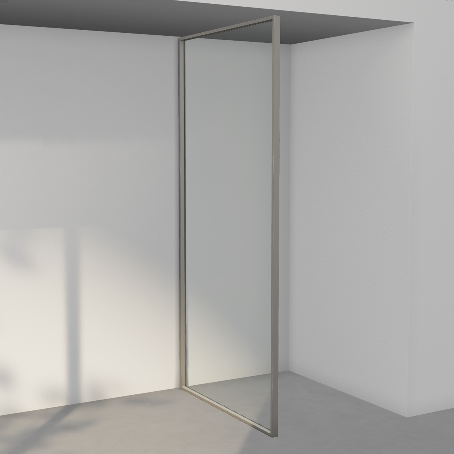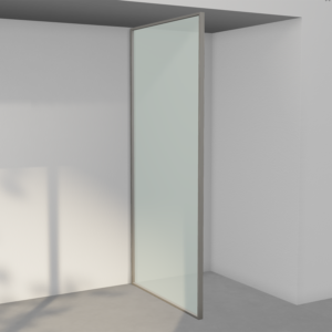 Hjørnene på rammen er i massiv aluminium med innovativ konstruksjon som skjuler alt som ikke er estetisk. Modellene med dør løfter elegant ved åpning og lukker tett mot gulvet takket være skjulte og utskiftbare tetninglister innfelt i rammen.