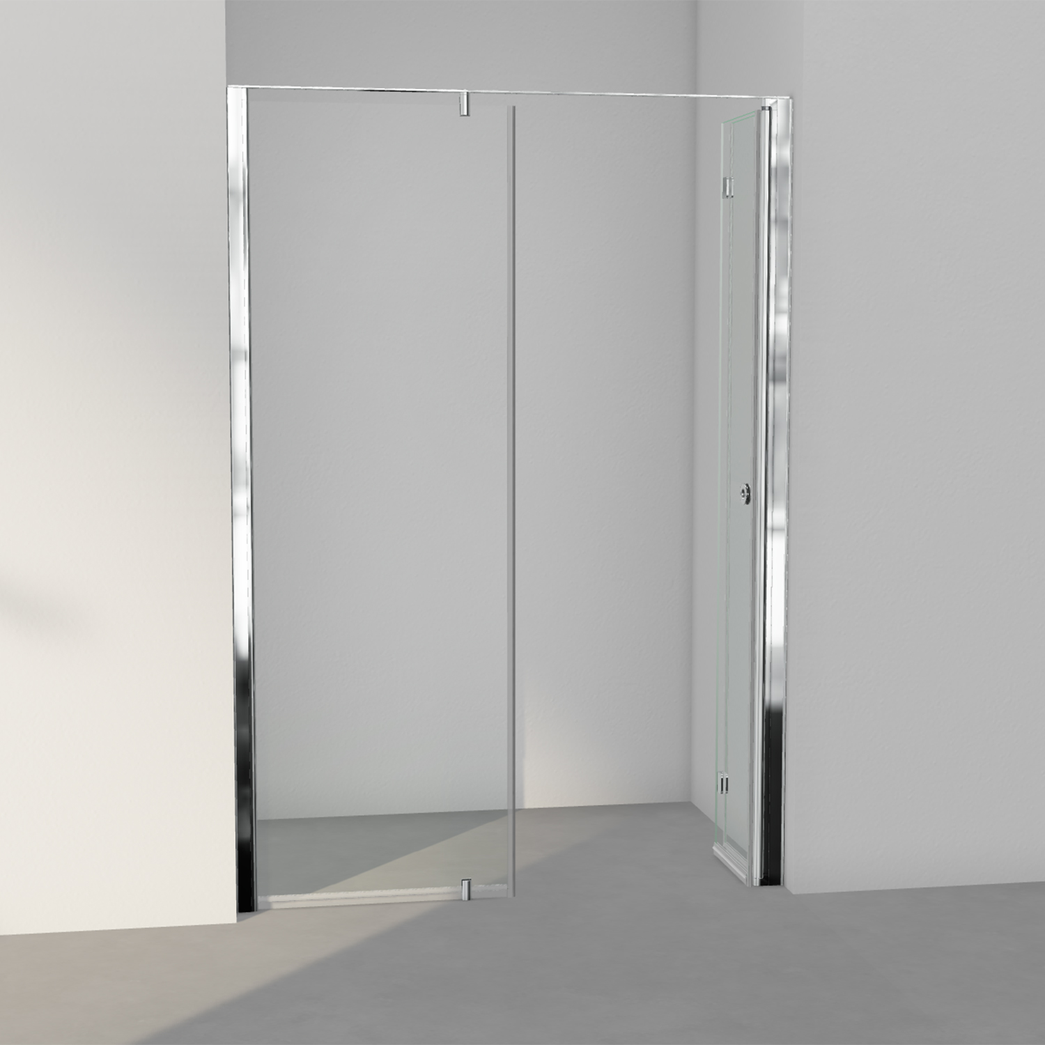 Fold sammen når du går inn. Fold ut for å lukke. Linc Flex ble utviklet for å spare plass på det lille badet. Seriens konstruksjon kombinerer løftehengslet i Linc Original med det spesielle foldehengslet som gjør det mulig å folde døren dobbelt. Hengslet limes på utsiden av glasset, og innsiden blir dermed helt slett uten skruer. Dette gjør det lettere å holde dusjen ren. Mellom glass og dører og i bunnen er det tetningslister som du kan bytte ut ved behov. Kompletter dusjløsningen din med dusjhyllen Pile som integreres i veggprofilen. Pile kommer i de samme utførelsene som dusjveggen. Velg om du vil skru dusjveggen til vegg på vanlig måte eller lime med Safe-Fix. Linc Flex blir produsert av en høy andel resirkulert aluminium i homogent materiale med markedets sterkeste overflatebehandling. Hele dusjveggen kan resirkuleres etter livssyklusen på 15 år eller mer.
