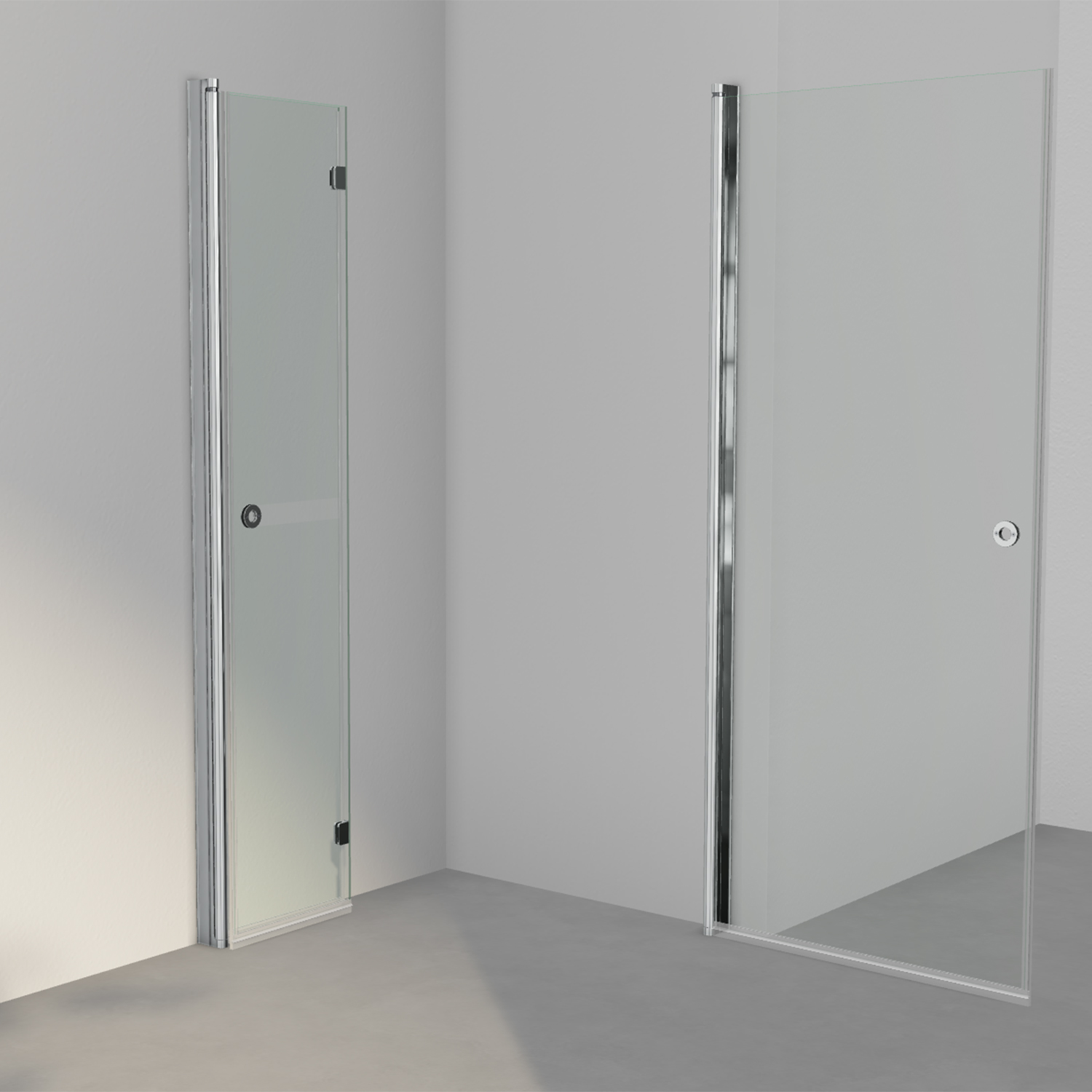Fold sammen når du går inn. Fold ut for å lukke. Linc Flex ble utviklet for å spare plass på det lille badet. Seriens konstruksjon kombinerer løftehengslet i Linc Original med det spesielle foldehengslet som gjør det mulig å folde døren dobbelt. Hengslet limes på utsiden av glasset, og innsiden blir dermed helt slett uten skruer. Dette gjør det lettere å holde dusjen ren. Mellom glass og dører og i bunnen er det tetningslister som du kan bytte ut ved behov. Kompletter dusjløsningen din med dusjhyllen Pile som integreres i veggprofilen. Pile kommer i de samme utførelsene som dusjveggen. Velg om du vil skru dusjveggen til vegg på vanlig måte eller lime med Safe-Fix. Linc Flex blir produsert av en høy andel resirkulert aluminium i homogent materiale med markedets sterkeste overflatebehandling. Hele dusjveggen kan resirkuleres etter livssyklusen på 15 år eller mer.