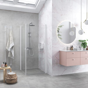 Nest holder flaskene dine i trygg forvaring. Den rominndelte skuffen slås ut 45° i åpen posisjon og sørger for at innholdet ikke faller ut. Vipp ut den frostede skuffen for å åpne og få en god oversikt over dusjproduktene dine. Bunnen har avrenningshull for enkel rengjøring og hele skuffeinnsatsen kan løftes ut og skylles av. Skrus i vegg med medfølgende skruer, alternativt limes opp med Safe-Fix Limsett, som du kjøper separat.