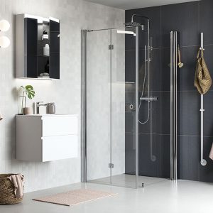 Pile er en oppbevaringsløsning som smelter sammen med dusjløsningene i Linc både når det gjelder design og funksjon. Pile monteres rett på vegg og så monterer du dusjdøren. Resultatet blir en smart vertikal oppbevaring på innsiden av dusjen som enkelt får plass til hele familiens sjampo- og såpeflasker. Pile har fem trinnløst justerbare hyller og du kan komplettere med flere ved behov. Pile bygger 100 mm regnet fra vegg. Trekk derfor fra 100 mm fra dusjens ønskede mål når du bestiller. Eksempel: Hvis du vil ha et 900 x 900-dusjhjørne sammen med Pile, angir du artikkelnummeret for 800×90 + artikkelnummeret for Pile. Skrus i vegg alternativt limes opp med Safe-Fix, som du kjøper separat.