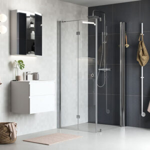 Pile er en oppbevaringsløsning som smelter sammen med dusjløsningene i Linc både når det gjelder design og funksjon. Pile monteres rett på vegg og så monterer du dusjdøren. Resultatet blir en smart vertikal oppbevaring på innsiden av dusjen som enkelt får plass til hele familiens sjampo- og såpeflasker. Pile har fem trinnløst justerbare hyller og du kan komplettere med flere ved behov. Pile bygger 100 mm regnet fra vegg. Trekk derfor fra 100 mm fra dusjens ønskede mål når du bestiller. Eksempel: Hvis du vil ha et 900 x 900-dusjhjørne sammen med Pile, angir du artikkelnummeret for 800×90 + artikkelnummeret for Pile. Skrus i vegg alternativt limes opp med Safe-Fix, som du kjøper separat.