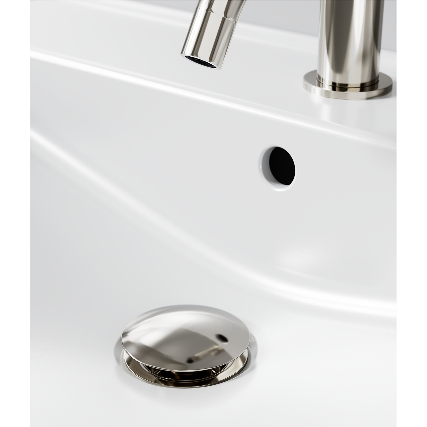 Bunnventilen i rustfritt stål matcher servantbatteriets utførelse. Den er en universalmodell. Under montering kan du velge å ha den åpen eller med pop-up. For servanter uten overløpshull, anbefaler vi å holde bunnventilen åpen for å unngå vannsøl.