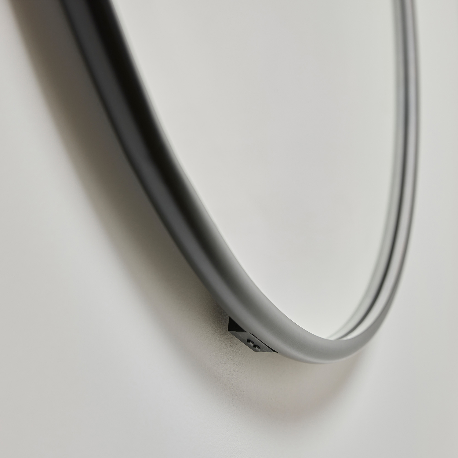 Bloom er et elegant rundt speil med sort ramme og to dimbare lys. Skap stemning på badet med det bakenforliggende lyset, og bruk lyset på innsiden av speilet for en god og klar belysning for daglig stell.