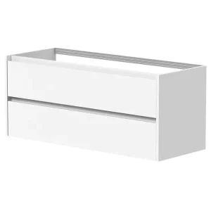 Eris benkeskap er en stilren og funksjonell møbelserie med moderne design. De integrerte grepene gir et rent og minimalistisk uttrykk. Underskapene har to romslige skuffer som glir jevnt på dempede skinner for stille og behagelig bruk. Du kan enkelt kombinere Eris benkeskap med andre moduler i serien for å skape en skreddersydd baderomsløsning. Velg mellom en enkel innredning med benkeplate eller en større løsning med servantskap. Serien inkluderer også et høyskap med samme elegante grep som skuffene.