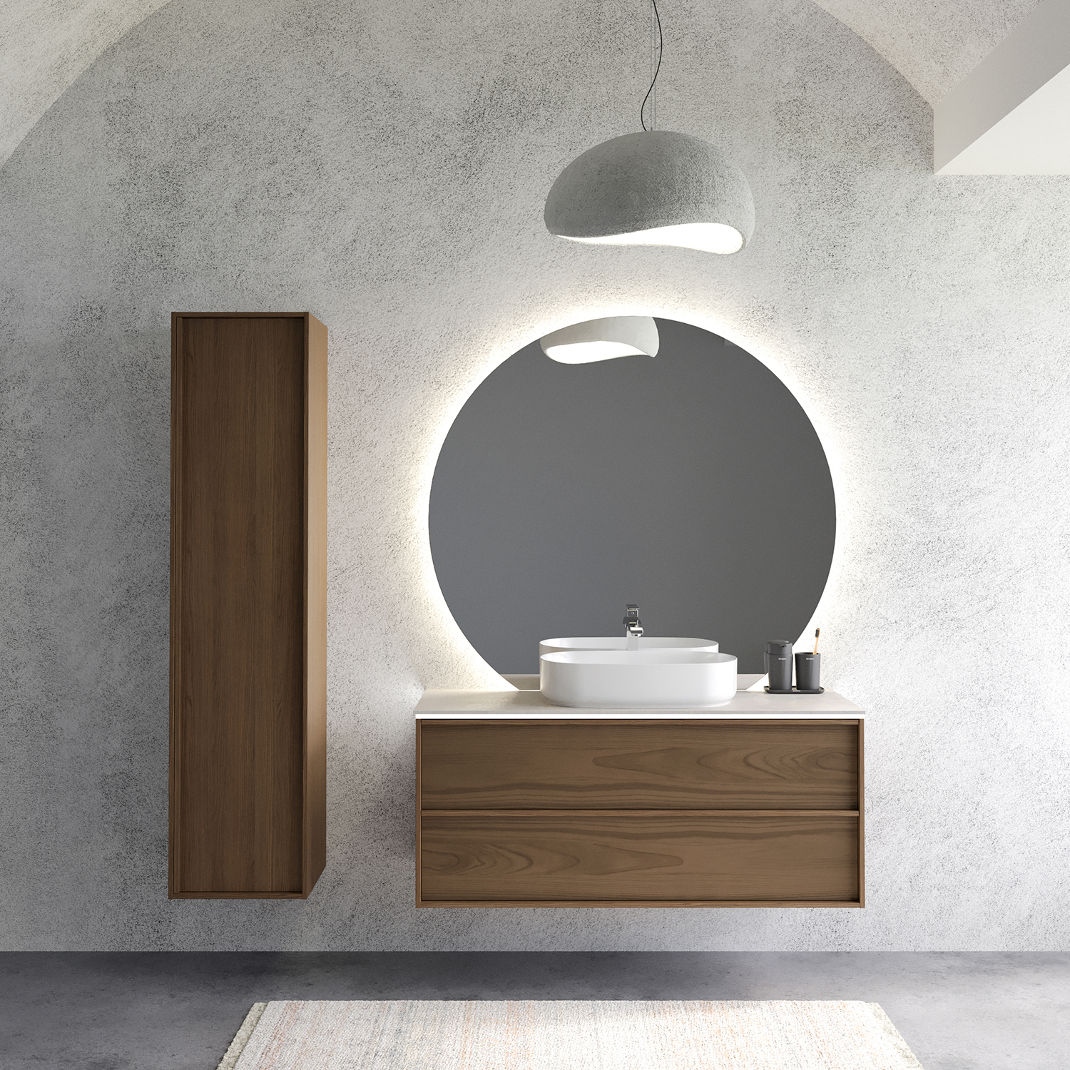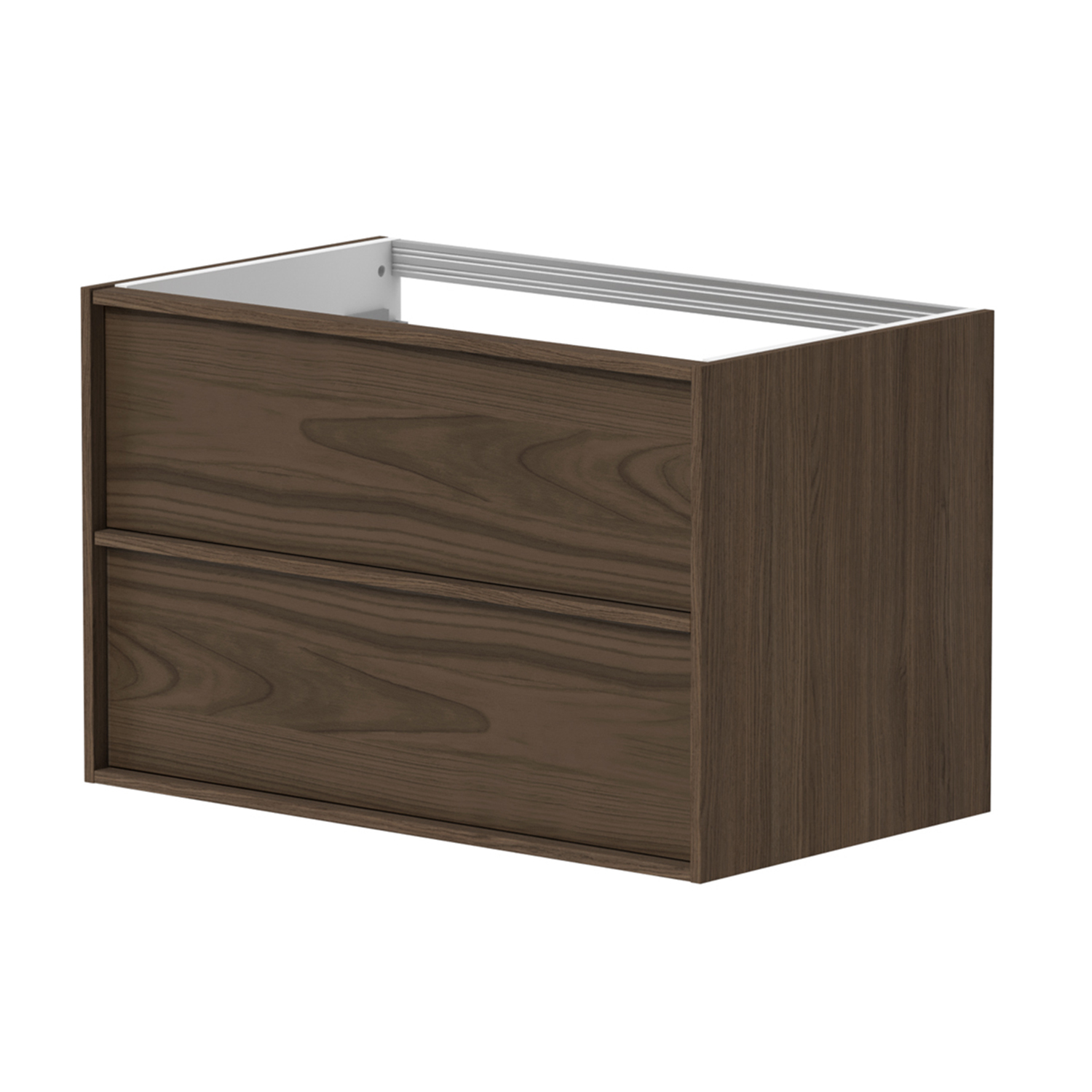 Minimalistisk nordisk design med rene former og sofistikerte detaljer. Integrerte håndtak i eik bidrar til å skape et helhetlig og elegant møbel. Baderomsmøbelet Home er laget i en kombinasjon av heltre eik og eikefiner. Skuffene er hvite innvendig og inkluderer antisklimatter. Skinner i skuff med dempelukking.