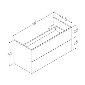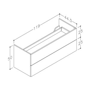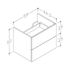 Rowan-serien tilbyr et stort utvalg i størrelser og farger. Møbelet har to skuffer og skinner med dempet lukking. Dette er et benkeskap uten utsparing til vannlås i den øverste skuffen og benyttes gjerne som ekstra skuff i kombinasjon med et servantskap og benkeplate. Benkeplatene kommer i laminert trestruktur som matcher møbelet, eller tynnere HPL-plater, noe som gir flere muligheter for ulike stiler og størrelser opptil 200 cm bredde. Standard grep følger med, og grep i andre farger kan kjøpes som tilleggsprodukt. Underskapet er forborret tilpasset standard grep, og hvis du ønsker andre grep, må møbelet bestilles deretter.