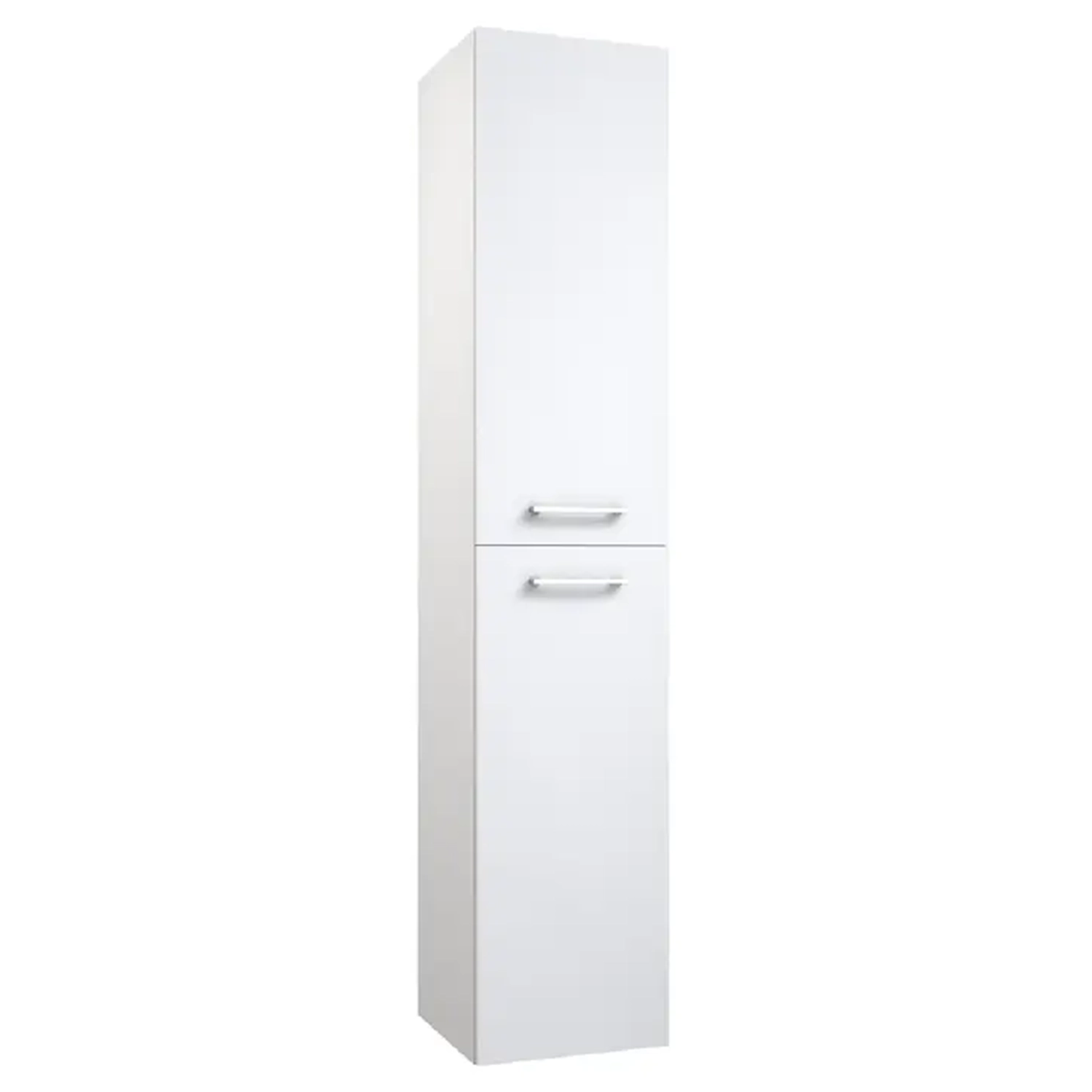 Med en hvit matt overflate får du en tidløs, men likevel rolig og elegant finish. Høyskapet har to dører og glasshyller du kan plassere fritt slik at du kan oppbevare baderomstilbehøret som det passer deg.