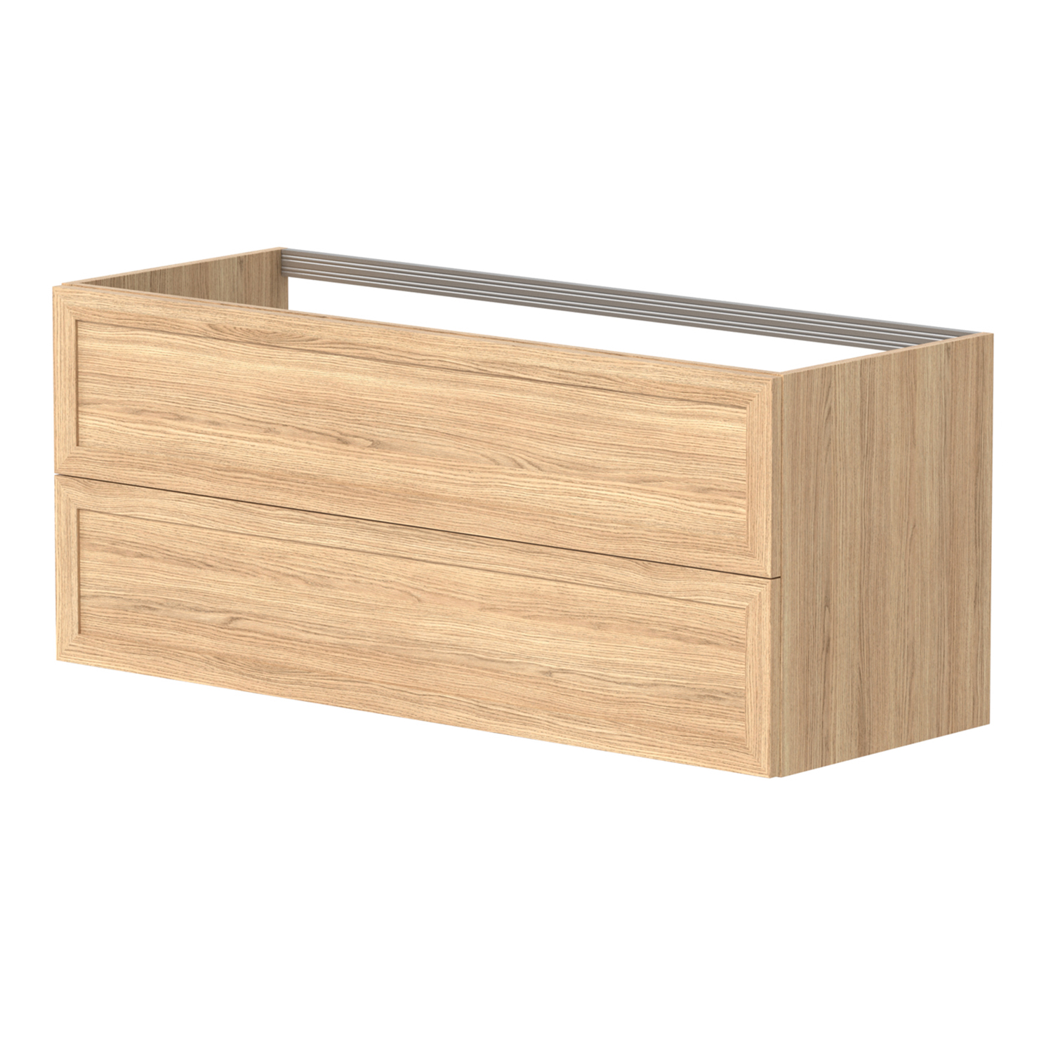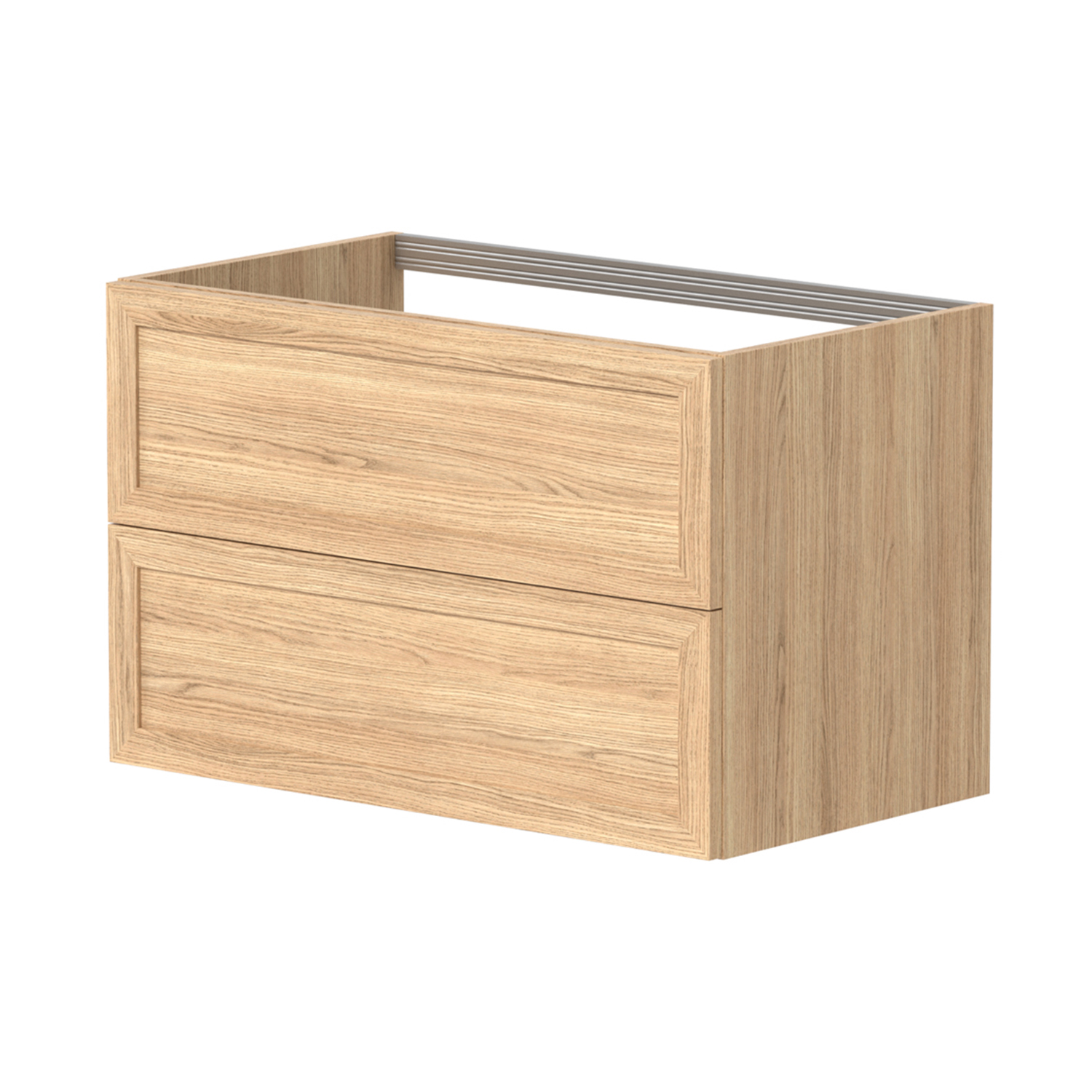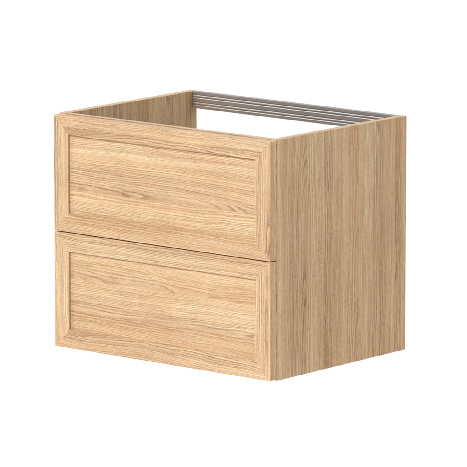 Underskapet på Rustic har en kombinasjon av heltre eik og eikefiner. Skuffene er hvite innvendig og inkluderer antisklimatter. Skinner i skuff med demping. Benkeskap har hele skuffer både oppe og nede. Rustic-serien har høyskap med like grep som på skuffene. Høyskapet har glasshyller og dørene kan monteres høyre/venstre. Speil med ramme i heltre eik kompletterer kolleksjonen.