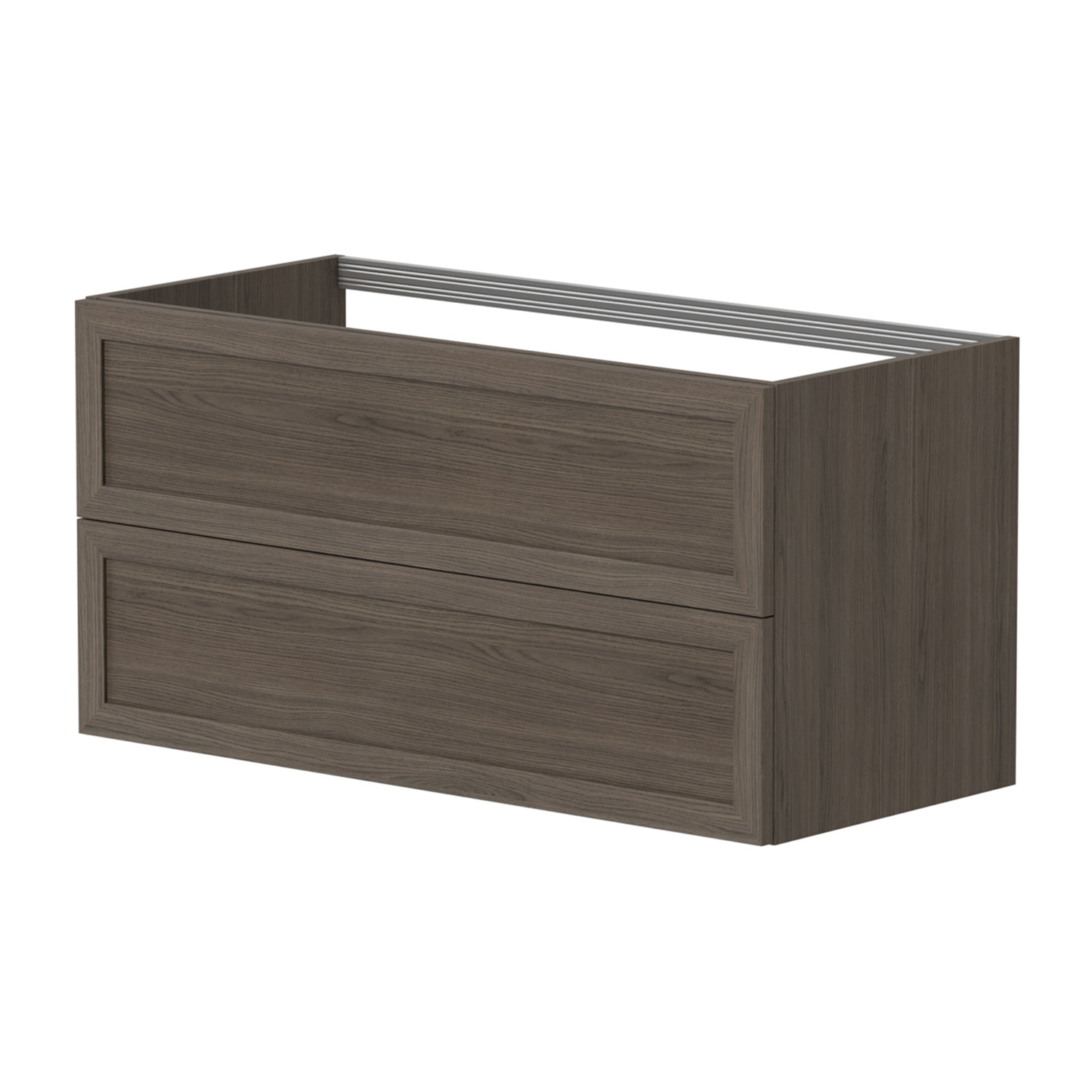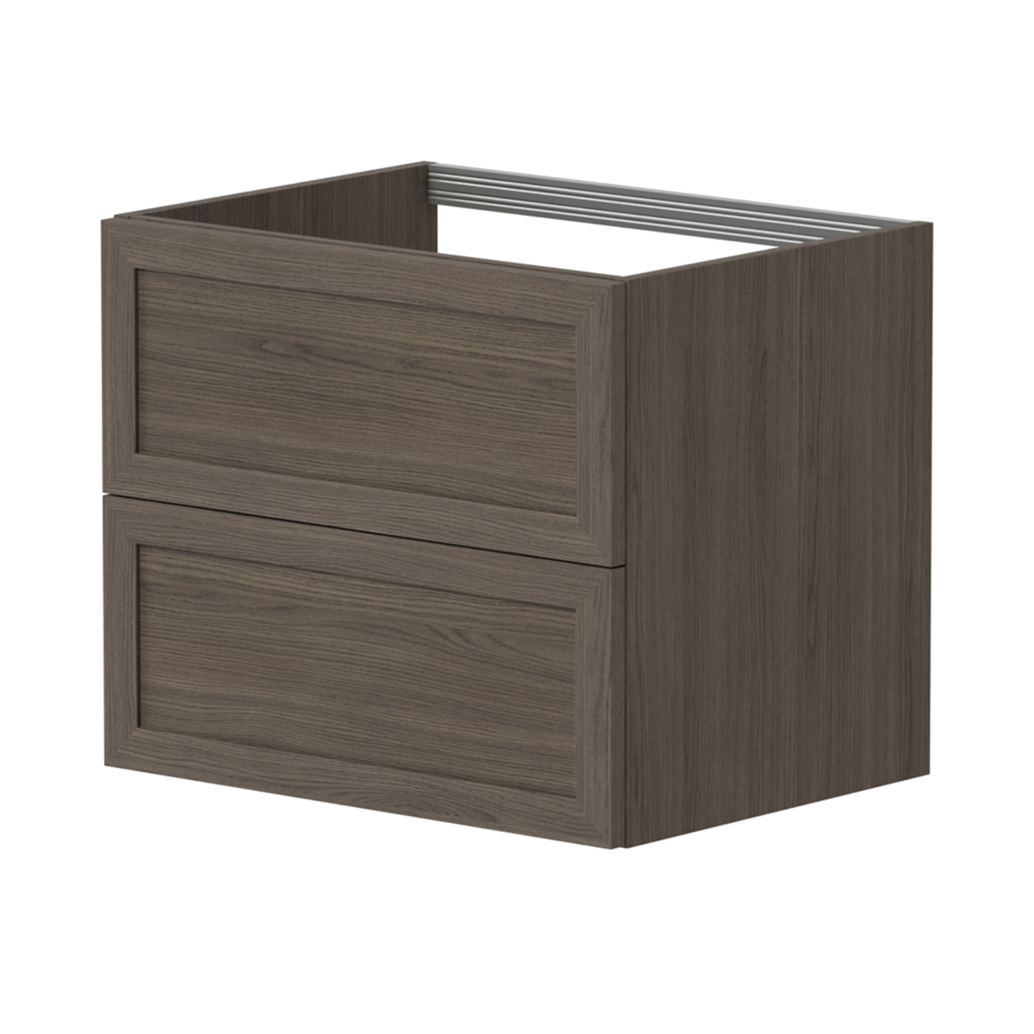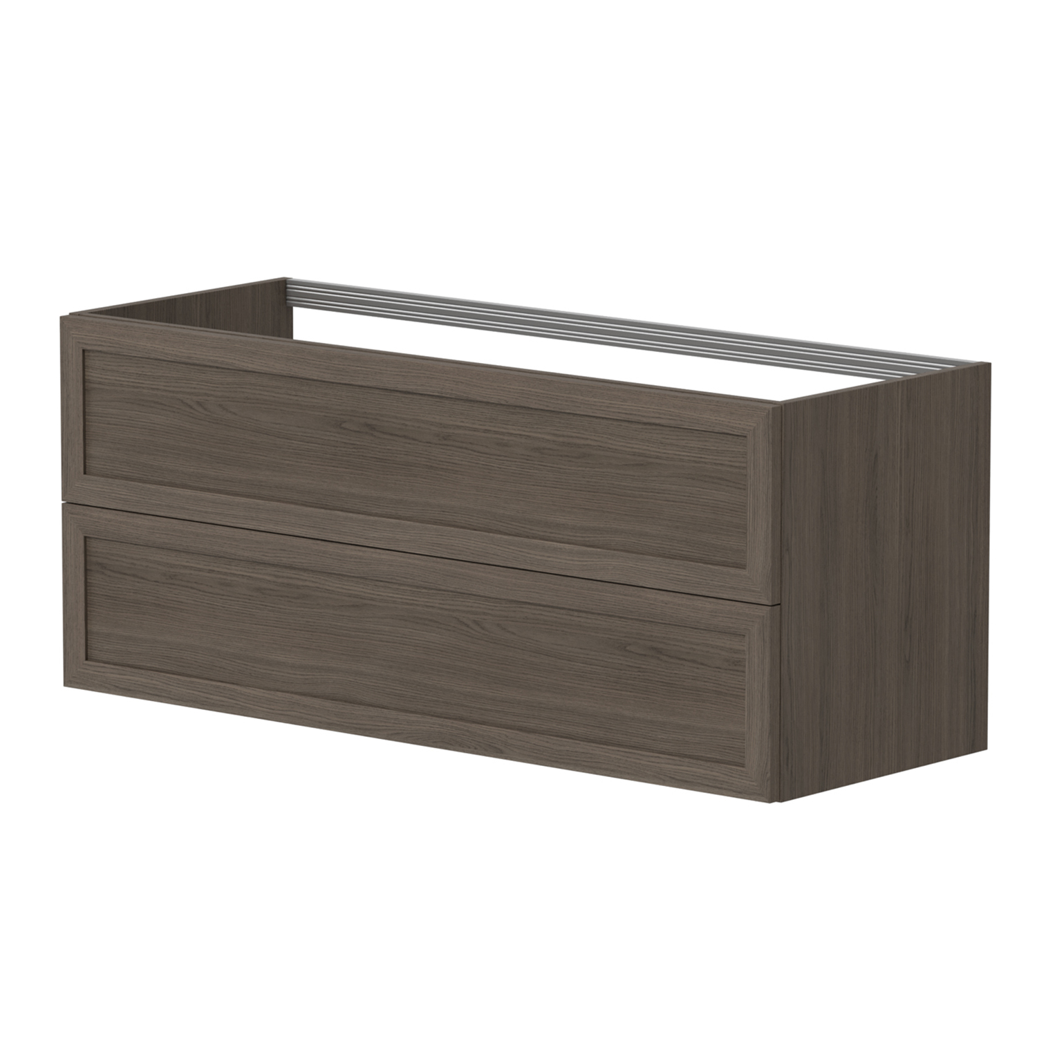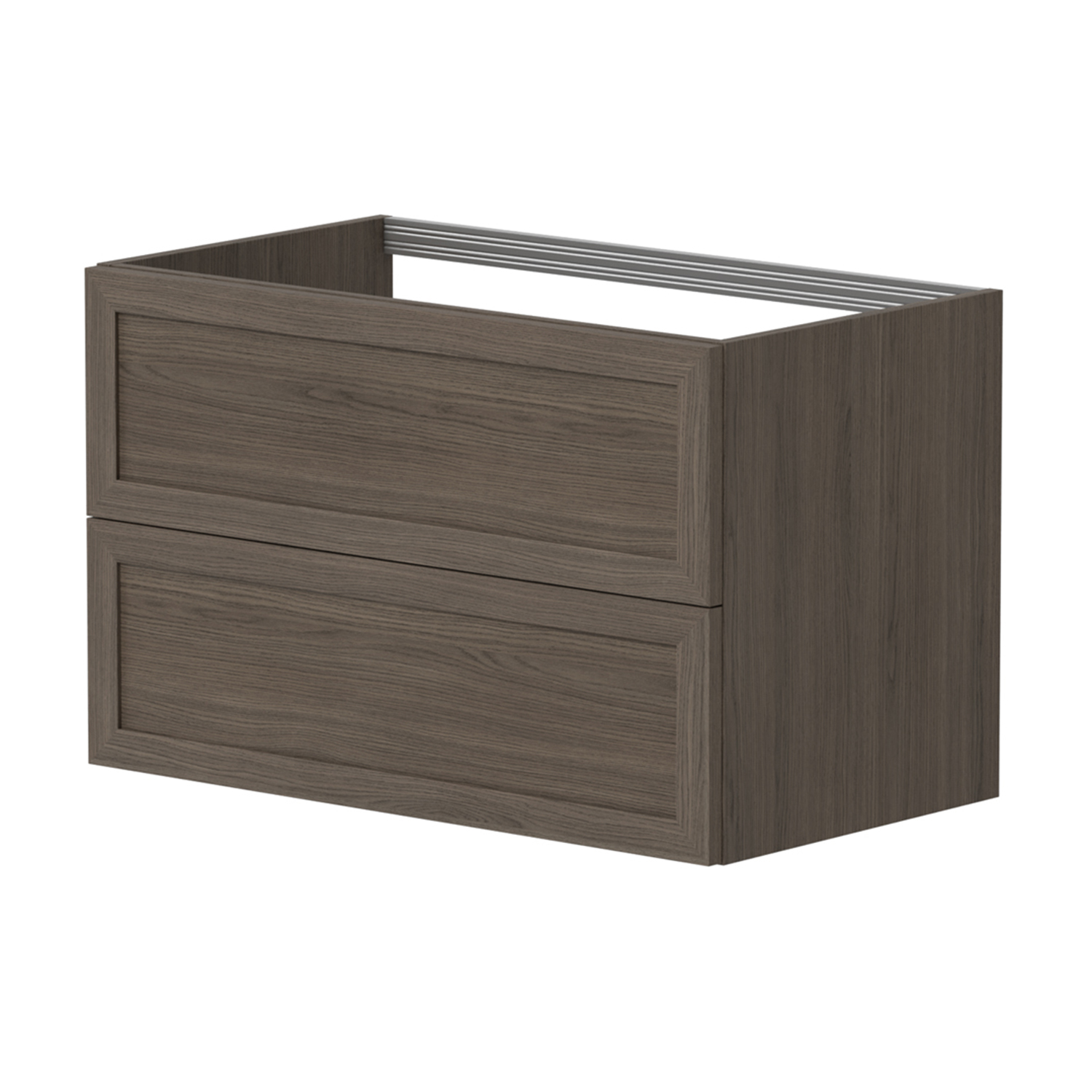 Underskapet på Rustic har en kombinasjon av heltre eik og eikefiner. Skuffene er hvite innvendig og inkluderer antisklimatter. Skinner i skuff med demping. Benkeskap har hele skuffer både oppe og nede. Rustic-serien har høyskap med like grep som på skuffene. Høyskapet har glasshyller og dørene kan monteres høyre/venstre. Speil med ramme i heltre eik kompletterer kolleksjonen.
