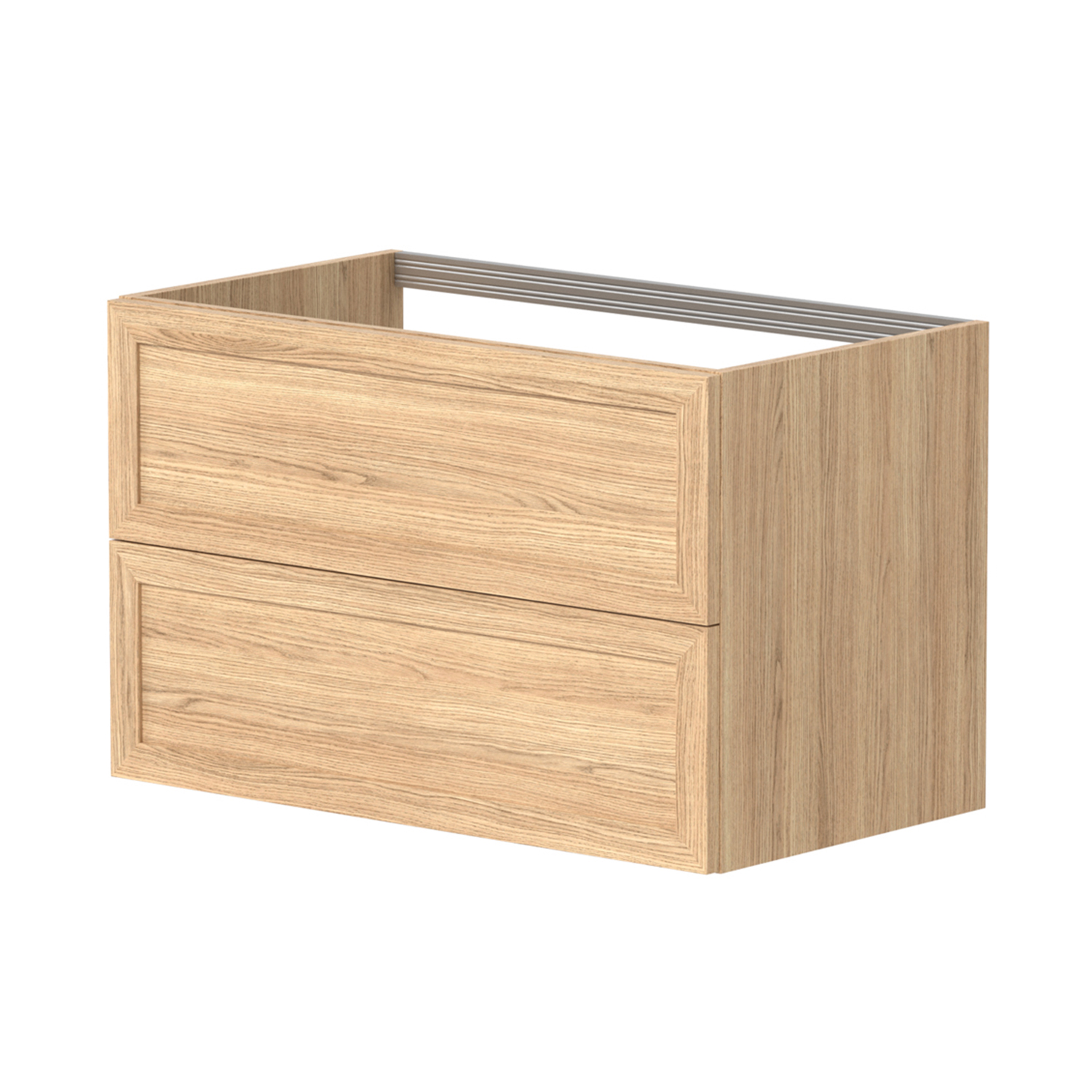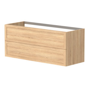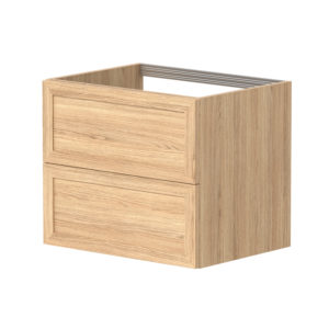 Underskapet på Rustic har en kombinasjon av heltre eik og eikefiner. Skuffene er hvite innvendig og inkluderer antisklimatter. Skinner i skuff med demping. Rustic-serien kommer med sorte matte grep inkludert.