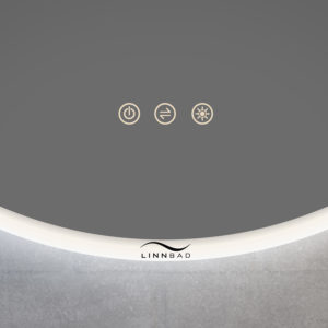 Finden rundt speil har frostet lyskant og berøringspanel med ulike funksjoner; av / på, dimmer og regulering av fargetemperatur.