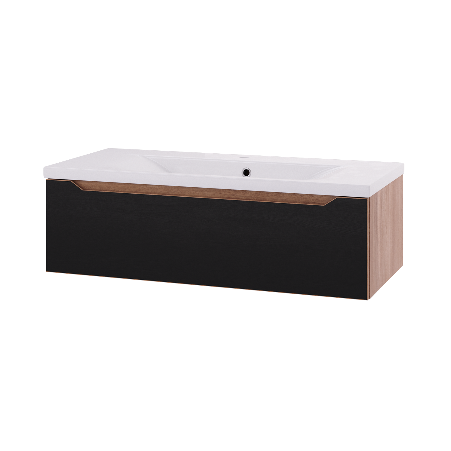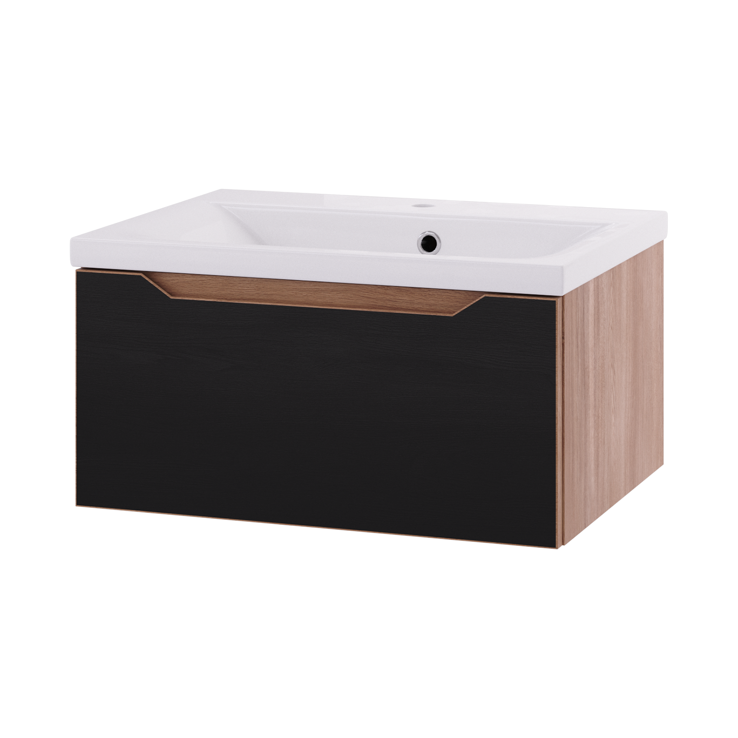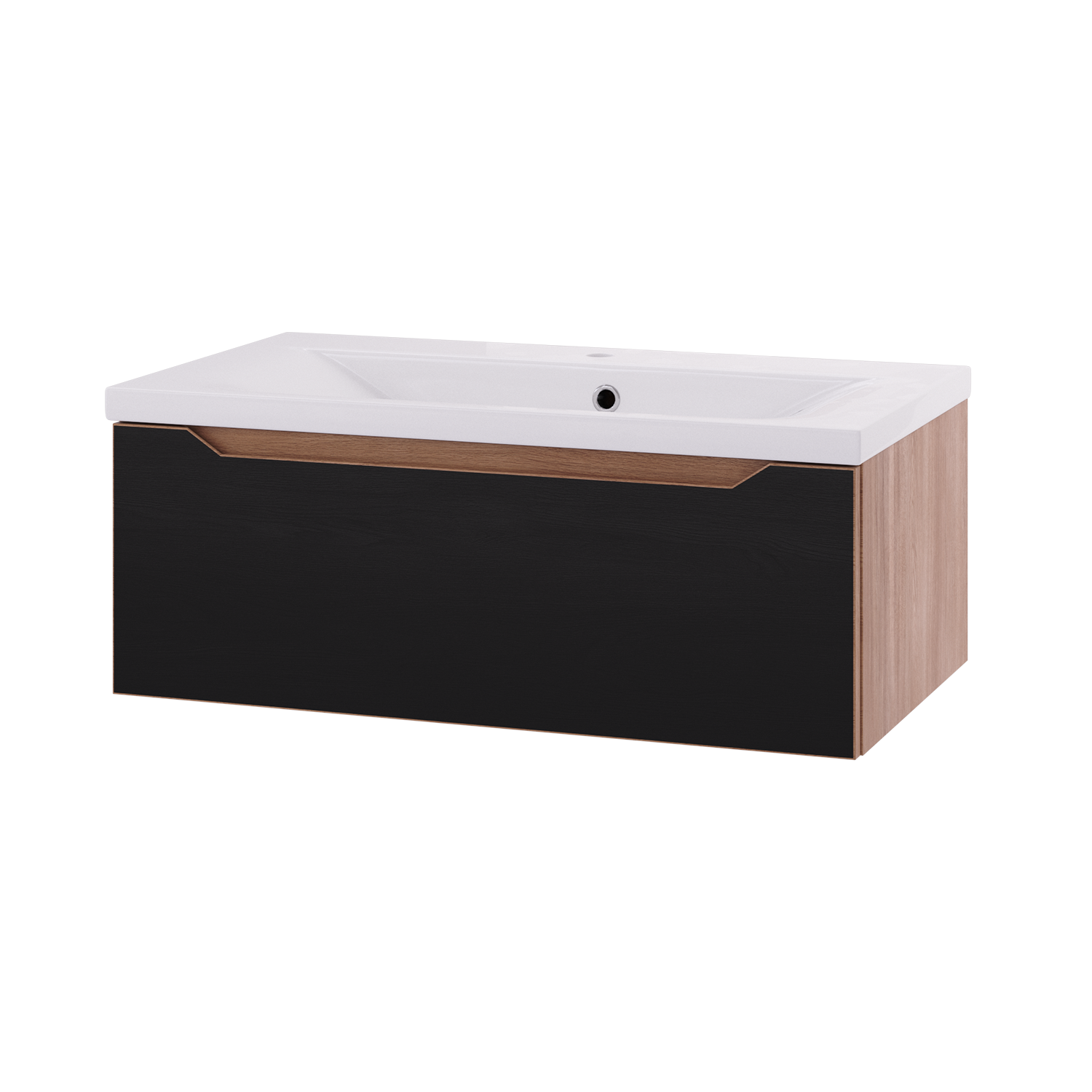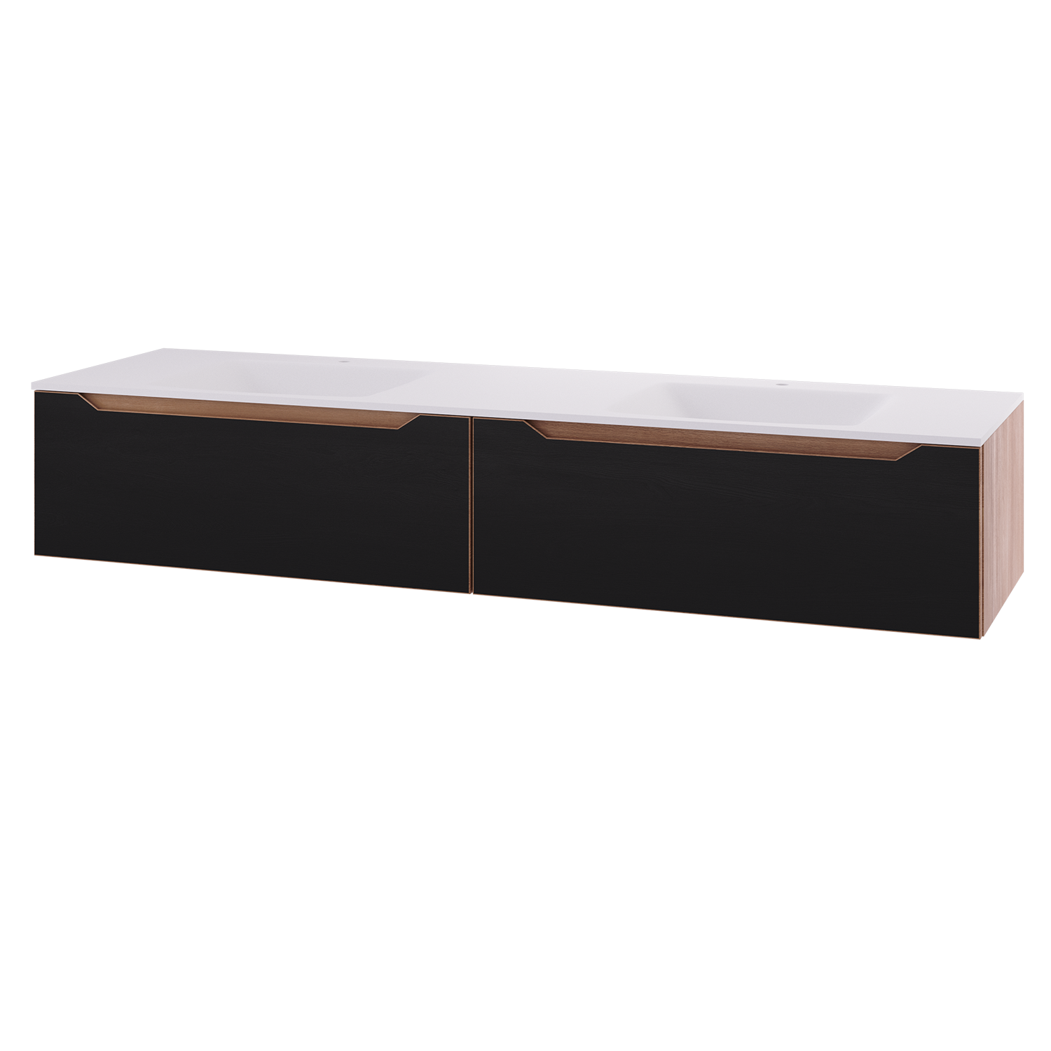 Emma baderomsmøbel i lakkert eller eikefinér bringer en unik spa-følelse inn i hverdagen din. Med sitt unike utseende og høye kvalitet er dette møbelet mer enn bare en funksjonell del av badet ditt. Emma forvandler den daglige rutinen din til en opplevelse av luksus og velvære. Den myke glansen av lakkerte overflater eller den naturlige varmen fra eikefinér skaper en visuell harmoni som vil inspirere deg hver eneste dag. Men Emma handler ikke bare om utseende. Den er bygget for å vare. Med materialer av høy kvalitet og en solid konstruksjon gir den deg en følelse av trygghet og pålitelighet. Du kan stole på at Emma baderomsmøbel vil være en trofast følgesvenn i årene som kommer. Gjør badet ditt til et sted der du kan unnslippe, slappe av og lade opp. Emma vil ta vare på resten.