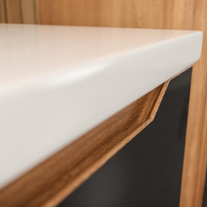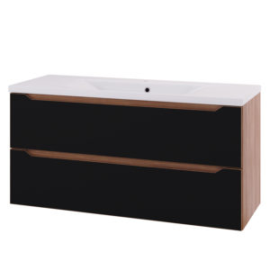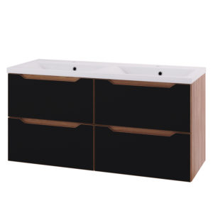 Svart matt og eik er material som er vakkert i kombinasjon – så hvorfor ikke lage et møbel av det? EMMA kan nå leveres i svart matt, med sider og handtak i eik. Bruk av bærekraftige tresorter er en del av Linn Bads miljøprofil – de brukar også heltre og glass som tilbehør i sine skuffer. Det varer lengre, og tærer mindre på miljøet.