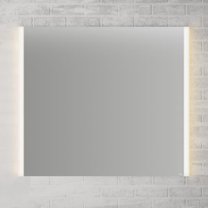 FYLI speil er et meget tynt speil med en dybde på bare 25 mm. FYLI har lys i ytterkant, med hele 180 dioder pr meter – det gir godt lys. Lyset dimmes med en diskret berøringsknapp under speilet.