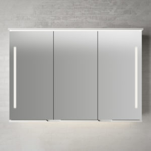 Dette speilskapet har alt du trenger – speil utenpå og innvendig på dørene, stikkontakt, lys i sider, topp og bunn, samt masser av plass. SOGN er et smykke til badet ditt. SOGN har samme farge på topp, bunn og sider og passer til de fleste LinnBad modeller.