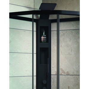Flow Semi dusjkabinett har et moderne utseende med slanke profiler, støpemarmorkar og avløp med hårsil. Dusjpanel med 2 hyller inkl. innfelt blandebatteri og takdusj. Dusjkabinettet er enkelt å montere med et minimum av skruer da mange av delene har klemfunksjon. Høyde 215 cm.