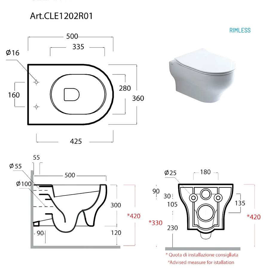 Clear er et moderne vegghengt toalett uten spylekant og er derfor vedlikeholdsvennlig. Toalettsetet har soft-close i tillegg til quick release toalettsete. Toalettet leveres komplett med både toalettskål og toalettsete.