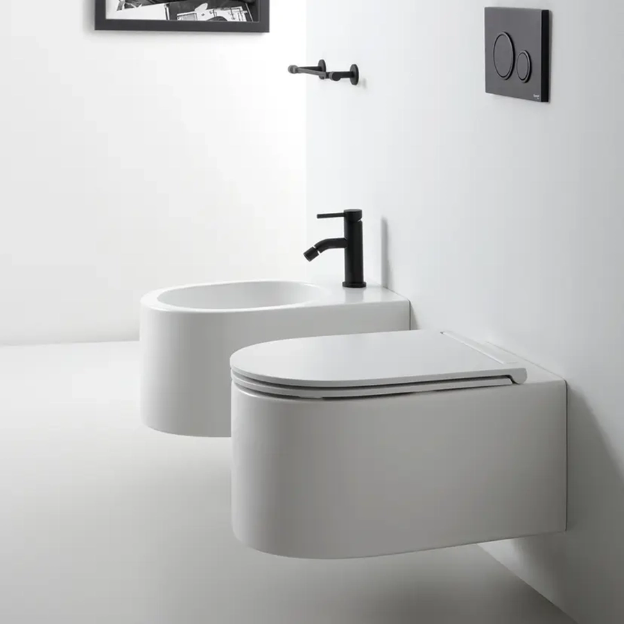 Oppgrader baderommet ditt med Monolith – et moderne, italienskprodusert vegghengt toalett som kombinerer estetikk, funksjon og hygiene. Toalettet har virvelspyling (rimless flush) uten synlige vannuttak i skålen, noe som gir et sømløst og minimalistisk uttrykk, samtidig som det sørger for effektiv og stillegående spyling. Den kantløse utformingen hindrer at smuss og bakterier fester seg, noe som gjør rengjøringen enklere og mer hygienisk. Monolith er et ideelt valg for deg som ønsker et rent og elegant baderom med smart teknologi. Setet medfølger og har både soft-close og quick release-funksjon, som gir økt brukervennlighet og enklere vedlikehold.