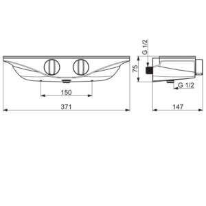 Termostatisk dusjkran med brukervennlige hendler. Temperaturbegrenser i håndtaket. Romslig hylle laget av sikkerhetsglass. Kranen er utstyrt med rett kobling, avstengning smussfilter og tilbakeslagsventiler.