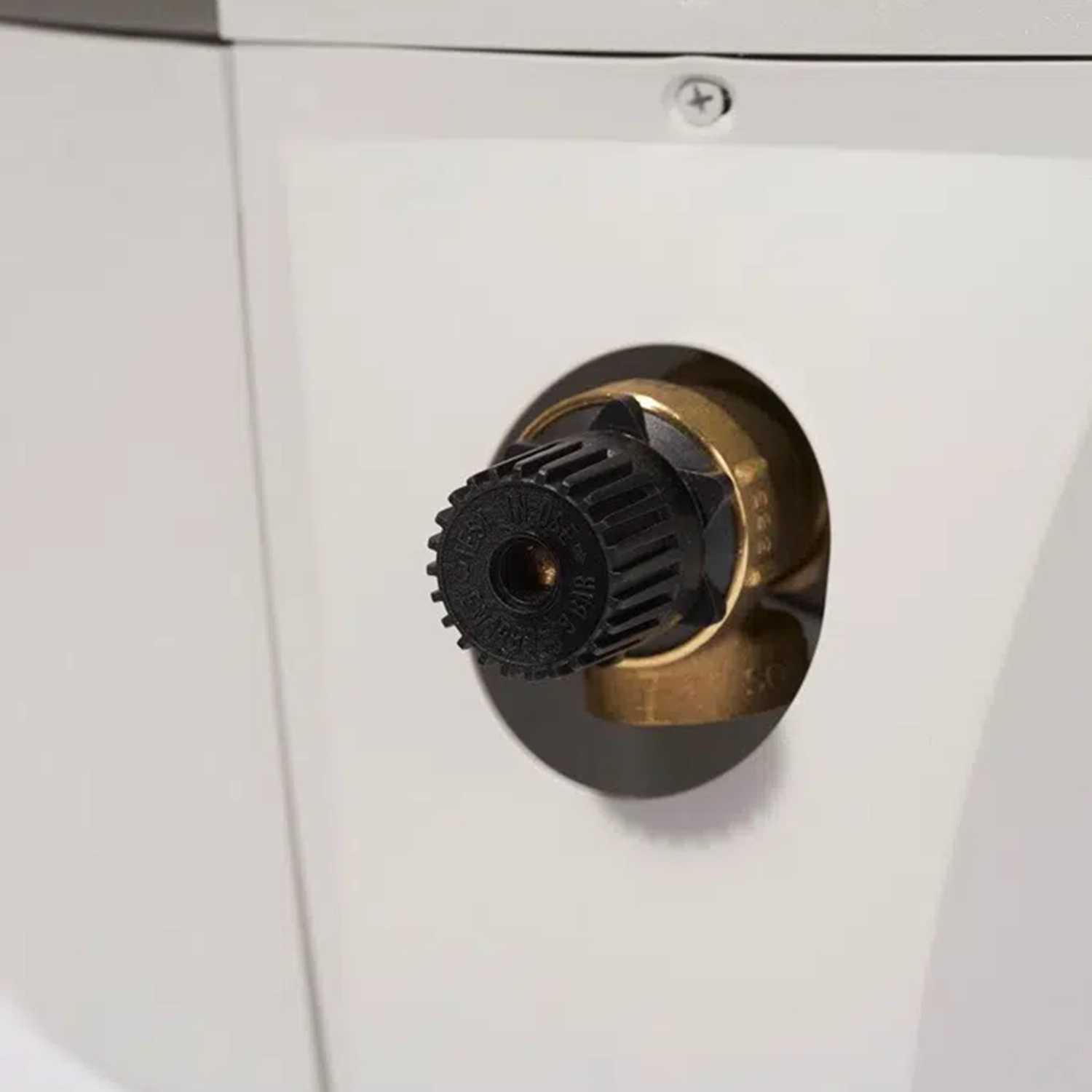 Blandeventilen nedjusterer utgående vanntemperatur og hindrer skoldingsfare.