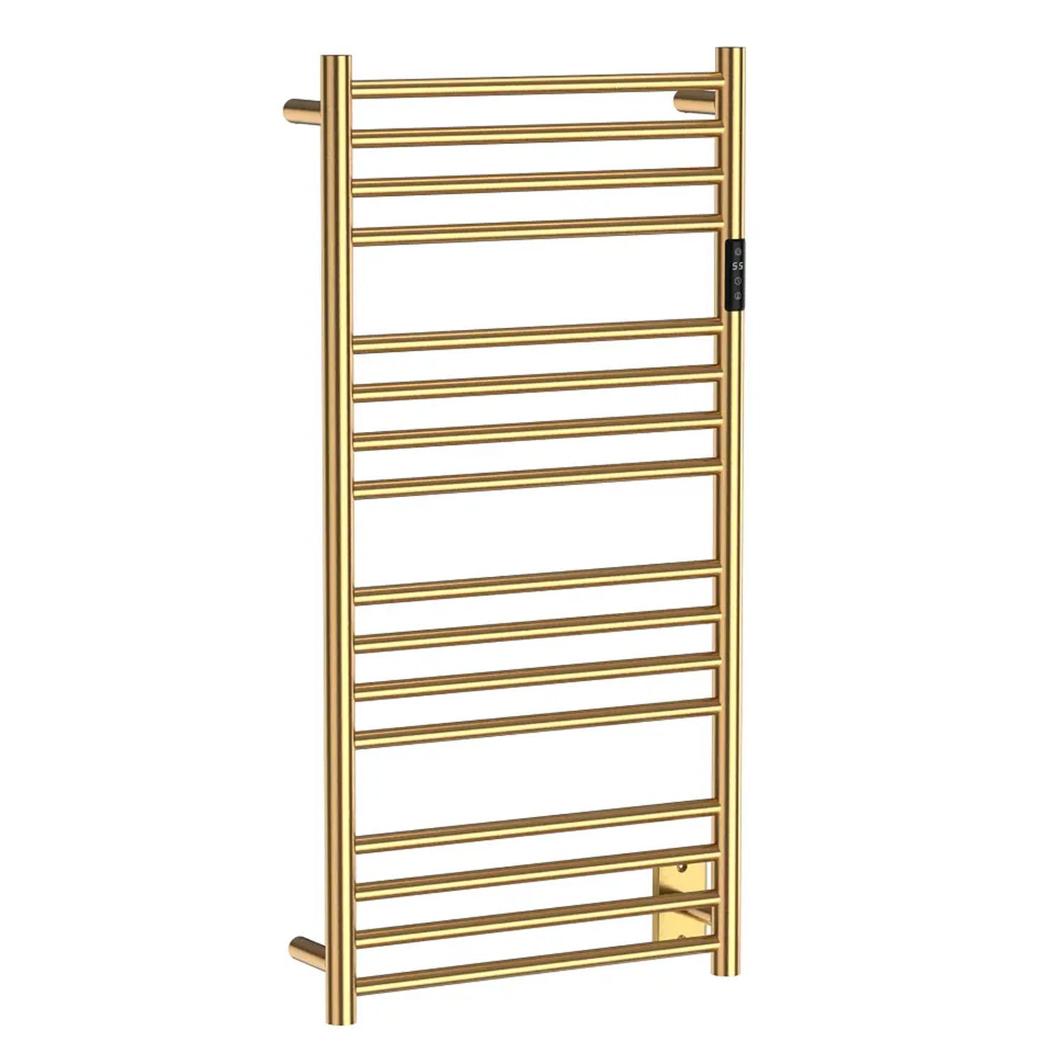 Safir håndkletørker i børstet messing har en slitesterk PVD-behandlet overflate. Håndkletørkeren kan selvfølgelig også benyttes til å tørke badetøy eller våte luer, skjerf og votter.