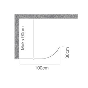- Monteres 90 cm fra hjørne