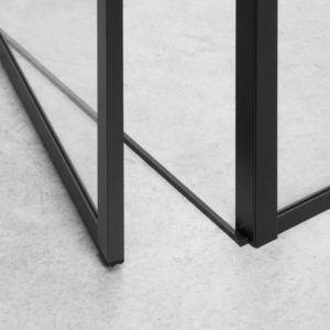 Takket være de eksepsjonelle detaljene, inkludert skjulte hengsler og muligheten for å installere døren uten terskel, har denne industrielle stilen blitt vellykket transformert til en moderne dusj. Sorte rammer og industrielle bolter brukes kun på utsiden, mens innsiden har en jevn overflate som er enkel å vedlikeholde. Glasset er behandlet med et belegg kalt Sealglass, som gjør det enkelt å rengjøre og holder glasset klart lenger.