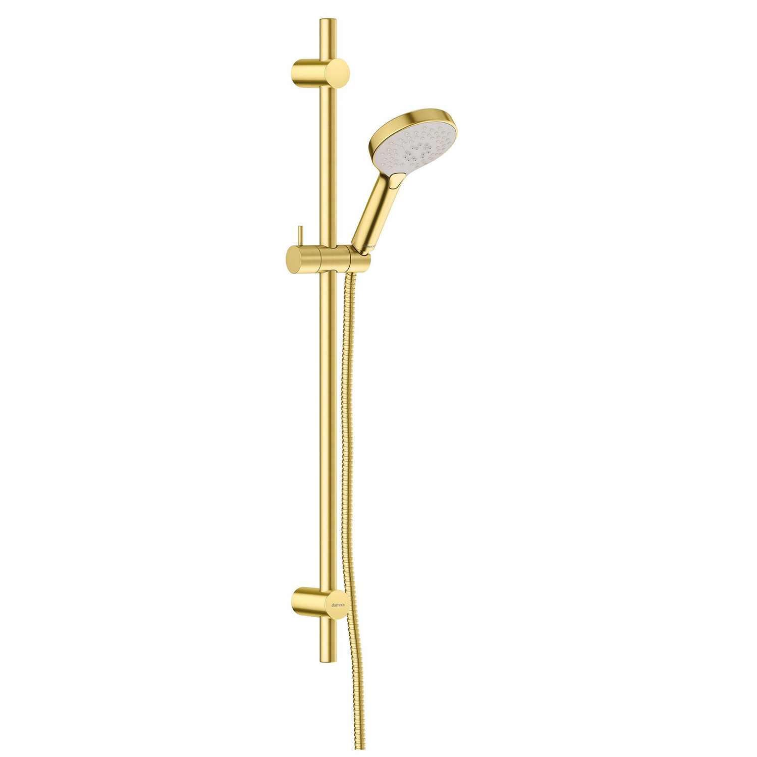 Dusjgarnityr med fleksibelt veggfeste, maks avstand 740 mm. Tre innstillinger på stråle. Sparedyse i hånddusj som enkelt kan fjernes. Gir 9 l vann pr minutt.