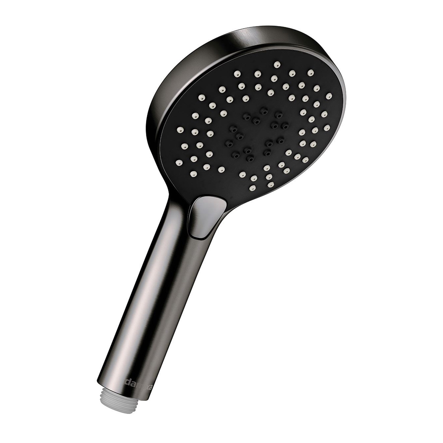 Hånddusj med tre reguleringer på trykknapp for strålen. Ø 110 mm.