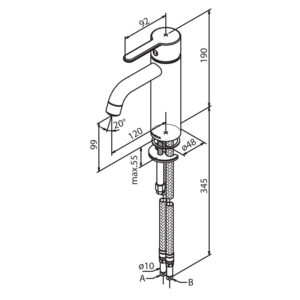 Servantkran som er litt høyere enn vanlig standard, noe som gir mer plass under tuten. Kranen har eco-save, skoldesperre og kaldstart. Ekstra holdbar PVD behandlet overflate. Høyde: 19 cm. Produsent: Damixa AS.